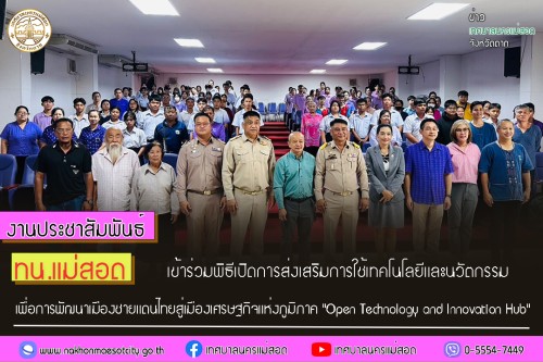 โดยมี นายกุล เครือวีระ นายกเทศมนตรีนครแม่สอด เป็นประธานในพิธีเปิดฯ พร้อมด้วย คณะผู้บริหาร และว่าที่พันตรี ดร.ไพฑูรย์ ปริญญาธรรมกุล ผู้อำนวยการกองยุทธศาสตร์และงบประมาณ เข้าร่วมพิธีเปิดการส่งเสริมการใช้เทคโนโลยีและนวัตกรรม เพื่อการพัฒนาเมืองชายแดนไทยสู่เมืองเศรษฐกิจแห่งภูมิภาค "Open Technology and Innovation Hub"
