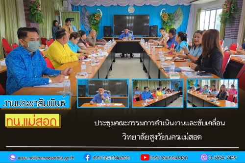 โดย นายกุล เครือวีระ นายกเทศมนตรีนครแม่สอด พร้อมด้วย นายจิรวัฒน์ มงคลจุฑาเศรษฐ รองนายกเทศมนตรี เลขานุการนายก ผู้อำนวยการกอง หัวหน้าฝ่าย เจ้าหน้าที่ที่เกี่ยวข้อง และคณะกรรมการฯ เข้าร่วมการประชุมคณะกรรมการดำเนินงานและขับเคลื่อน วิทยาลัยสูงวัยนครแม่สอด กิจกรรมภายใต้ โครงการส่งเสริมสุขภาพผู้สูงอายุ สร้างจิตสดใส ร่างกายแข็ง และ โครงการพัฒนาศักยภาพผู้สูงอายุเทศบาลนครแม่สอด