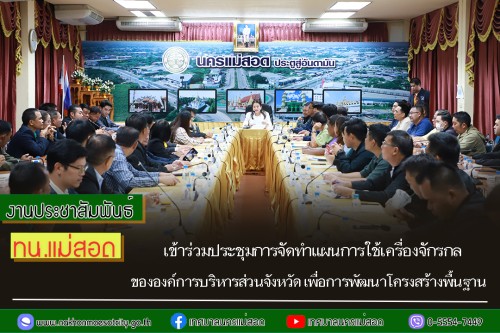 โดย นายกุล เครือวีระ นายกเทศมนตรีนครแม่สอด มอบหมายให้ นายวสุธร บุญมาก รองนายกเทศมนตรีนครแม่สอด พร้อมด้วย นายประสาน มั่นมาก รองปลัดเทศบาล รักษาราชการแทน ปลัดเทศบาลนครแม่สอด ผู้อำนวยการและเจ้าหน้าที่กองช่าง และเจ้าหน้าที่ที่เกี่ยวข้อง เข้าร่วมประชุมการจัดทำแผน การใช้เครื่องจักรกลขององค์การบริหารส่วนจังหวัด เพื่อการพัฒนาโครงสร้างพื้นฐาน ในปีงบประมาณ พ.ศ. 2569 ซึ่งเป็นการหารือแนวทาง ในการขอใช้เครื่องจักรกลและน้ำมันเชื้อเพลิง ขององค์การบริหารส่วนจังหวัดตาก เพื่อพัฒนางานด้านโครงสร้างพื้นฐาน ให้เป็นไปอย่างถูกต้องตามระเบียบขั้นตอน ป้องกันไม่ให้เกิดความซับซ้อน ทั้งยังเปิดโอกาสให้องค์กรปกครองส่วนท้องถิ่น ในเขตพื้นที่ 4 อำเภอฝั่งตะวันตก ได้เสนอแผนการขอใช้เครื่องจักรกล ขององค์การบริหารส่วนจังหวัดตาก เพื่อนำไปพิจารณาจัดลำดับการขอใช้ ประจำปีงบประมาณ พ.ศ. 2569 ต่อไป โดยมี นางอัจฉรา ทวีเกื้อกูลกิจ นายกองค์การบริหารส่วนจังหวัดตาก เป็นประธานการประชุมฯ