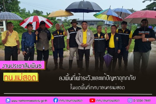 โดยมี นายกุล เครือวีระ นายกเทศมนตรีนครแม่สอด พร้อมด้วย คณะผู้บริหาร สมาชิกสภาเทศบาล ประธานชุมชนในเขตเทศบาลนครแม่สอด และเจ้าหน้าที่ที่เกี่ยวข้อง ร่วมลงพื้นที่เฝ้าระวังและแก้ปัญหาอุทกภัย ในเขตพื้นที่เทศบาลนครแม่สอด เนื่องจากมีฝนตกอย่างต่อเนื่อง