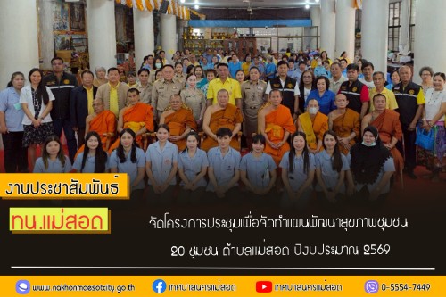 โดยนายกุล เครือวีระ นายกเทศมนตรีนครแม่สอด พร้อมด้วย คณะผู้บริหาร สมาชิกสภาเทศบาล ผู้อำนวยการกอง หัวหน้าส่วนราชการ เจ้าหน้าที่คลินิกชุมชนอบอุ่นเทศบาลนครแม่สอด กองสาธารณสุขและสิ่งแวดล้อม และเจ้าหน้าที่ที่เกี่ยวข้อง เข้าร่วมโครงการ ประชุมเพื่อจัดทำแผนพัฒนาสุขภาพชุมชน 20 ชุมชน ตำบลแม่สอด ปีงบประมาณ 2569 โดยมีวัตถุประสงค์ เพื่อทราบปัญหาด้านสุขภาพในพื้นที่อย่างแท้จริง และเพื่อใช้เป็นแนวทางในการจัดทำงบประมาณรายจ่ายประจำปี ของกองทุนหลักประกันสุขภาพแห่งเทศบาลนครแม่สอด ตอบสนองความต้องการของประชาชนในท้องถิ่น