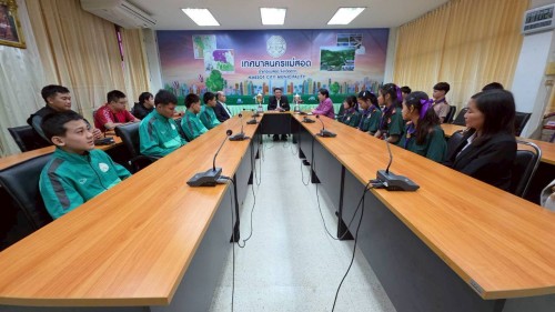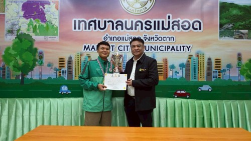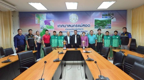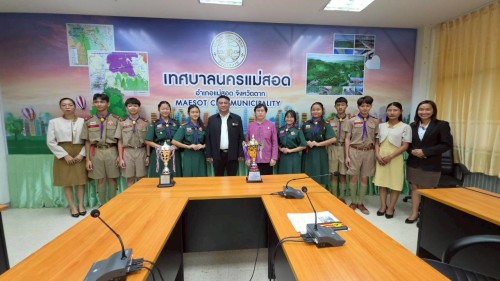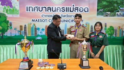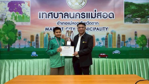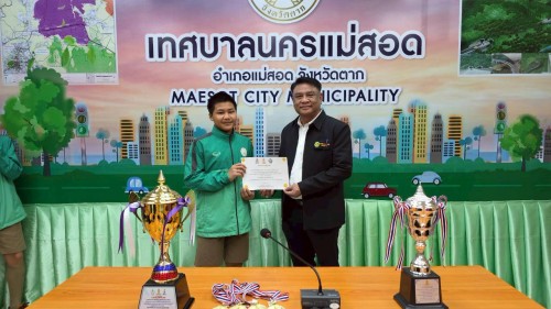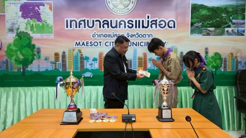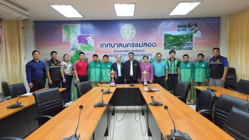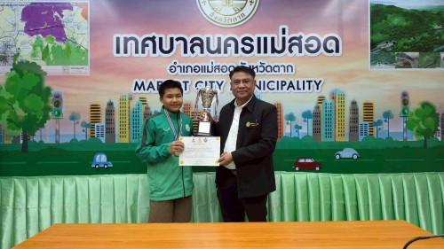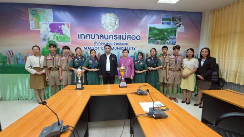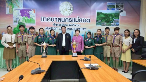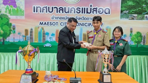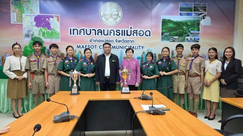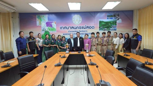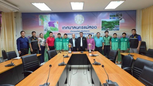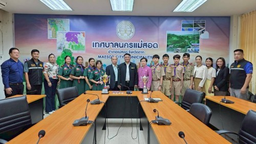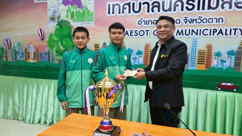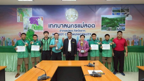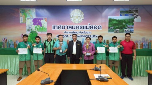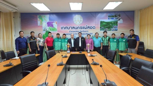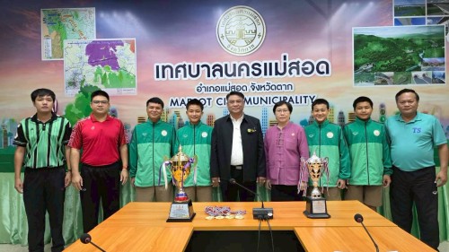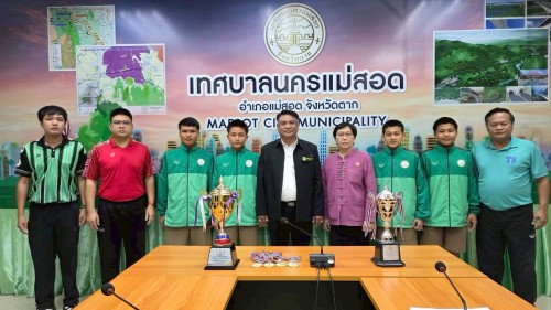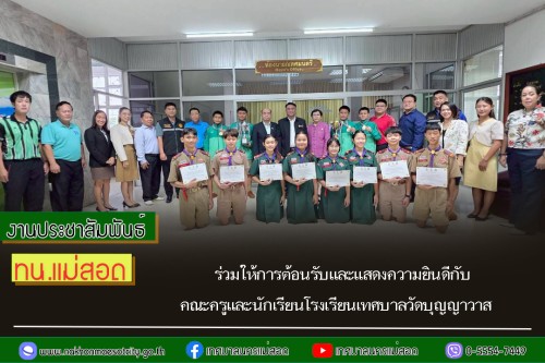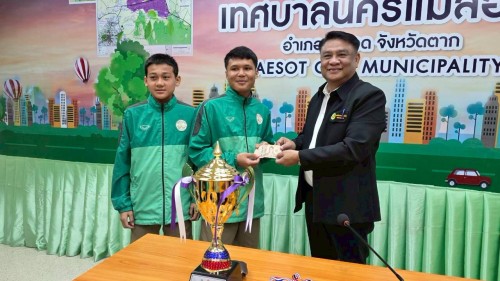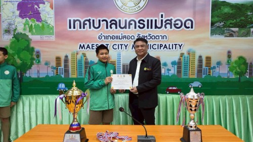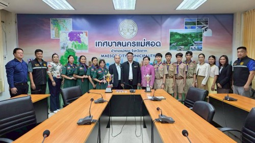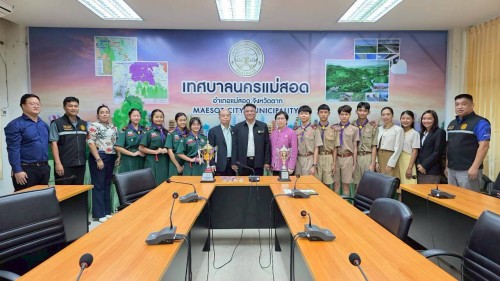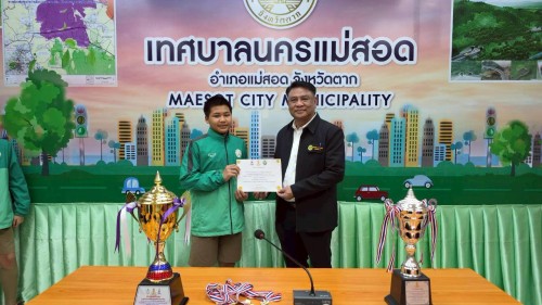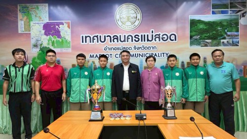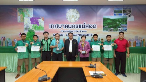 นายกุล เครือวีระ นายกเทศมนตรีนครแม่สอด พร้อมด้วย คณะผู้บริหาร ร่วมให้การต้อนรับและแสดงความยินดีกับคณะครูและนักเรียนโรงเรียนเทศบาลวัดบุญญาวาส ในโอกาสชนะเลิศการแข่งขันตะกร้อชิงถ้วยพระราชทานสมเด็จพระกนิษฐาธิราชเจ้ากรมสมเด็จพระเทพรัตนราชสุดาฯ สยามบรมราชกุมารี ครั้งที่ 36 ประจำปี 2568 ในประเภท 4 คน ทีมเดี่ยว 16 ปีชาย ระดับประเทศ และได้รับรางวัลเหรียญทองจากการประกวดนาฏดุริยางคศิลป์ระดับชาติ ชิงถ้วยพระราชทานสมเด็จพระกนิษฐาธิราชเจ้า กรมสมเด็จพระเทพรัตนราชสุดาฯ สยามบรมราชกุมารี “ นาฏดุริยะพริ้งเพริศเทิดพระเกียรติ” ประจำปี พ.ศ.2568 ประเภทนาฏศิลป์ไทย