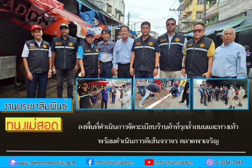 นายกุล เครือวีระ นายกเทศมนตรีนครแม่สอด มอบหมายให้ นายวสุธร บุญมาก รองนายกเทศมนตรีนครแม่สอด พร้อมด้วย คณะผู้บริหาร สมาชิกสภาเทศบาล หัวหน้าส่วนราชการ เจ้าหน้าที่กองช่าง เจ้าหน้าที่กองสาธารณสุขและสิ่งแวดล้อม เจ้าหน้าที่เทศกิจเทศบาลนครแม่สอด และเจ้าหน้าที่ที่เกี่ยวข้องร่วมกับ ตำรวจภูธรแม่สอด เจ้าหน้าที่ฝ่ายปกครองอำเภอแม่สอด ลงพื้นที่ดำเนินการจัดระเบียบร้านค้าที่รุกล้ำถนนและทางเท้า พร้อมดำเนินการตีเส้นจราจร ตลาดพาเจริญ