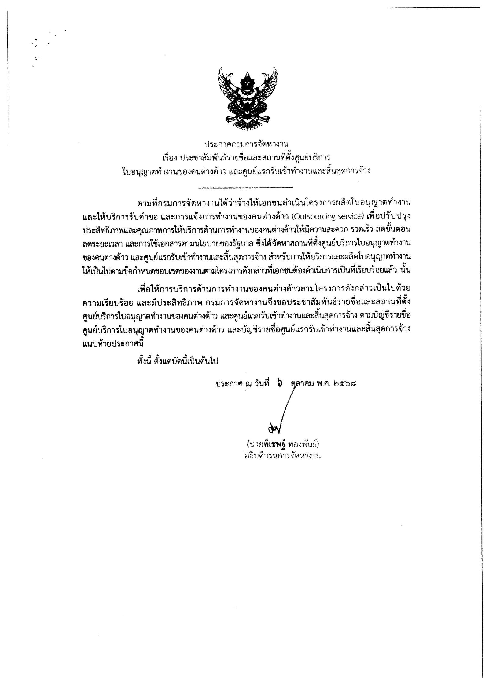 ด้วยกรมการจัดหางานได้ปรับเปลี่ยนรูปแบบและวิธีการดำเนินการให้บริการด้านการอนุญาตทำงานของคนต่างด้าว เพื่อปรับปรุงประสิทธิภาพ และคุณภาพการให้บริการด้านการทำงานของคนต่างด้าว เกี่ยวกับการขออนุญาตทำงานและการแจ้งการทำงานของคนต่างด้าว ผ่านช่องทางอิเล็กทรอนิกส์ของกรมการจัดหางานให้มีความสะดวก รวดเร็ว ทันสมัย โปร่งใส และตรวจสอบได้ ซึ่งมีกำหนดเปิดให้บริการในวันที่ 13 ตุลาคม 2568 เป็นต้นไป สำนักงานจัดหางานจังหวัดตาก จึงขอประชาสัมพันธ์ช่องทางอิเล็กทรอนิกส์สำหรับติดต่ดต่อกรมการจัดหางาน เพื่อขอรับบริการเกี่ยวกับการขออนุญาตทำงานและการแจ้งการทำงานของคนต่างด้าว และประชาสัมพันธ์รายชื่อและสถานที่ตั้งศูนย์บริการใบอนุญาตทำงานของคนต่างด้าว และศูนย์แรกรับเข้าทำงานและสิ้นสุดการจ้าง รายละเอียดตามสื่อด้านล่างนี้