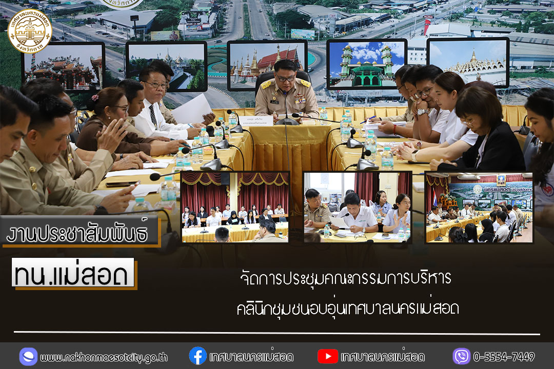 นายกุล เครือวีระ นายกเทศมนตรีนครแม่สอด พร้อมด้วย คณะผู้บริหาร สมาชิกสภาเทศบาลนครแม่สอด รองปลัดเทศบาลนครแม่สอด หัวหน้าส่วนราชการ และเจ้าหน้าที่คลินิกชุมชนอบอุ่น กองสาธารณสุขและสิ่งแวดล้อม เข้าร่วมการประชุมคณะกรรมการบริหารคลินิกชุมชนอบอุ่นเทศบาล นครแม่สอด
