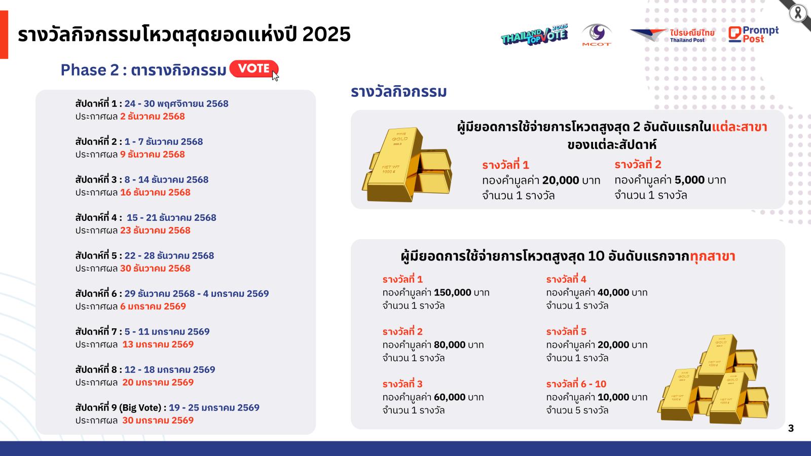 มาจากโหวตของประชนทั่วประเทศ ผ่านแอปพลิเคชัน Prompt Post ระหว่างวันที่ 15 ตุลาคม 2568 - 11 มกราคม 2569