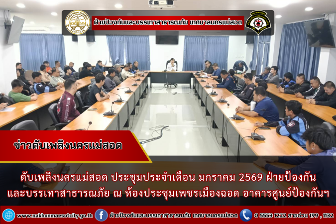 ดับเพลิงนครแม่สอด ประชุมประจำเดือน มกราคม 2569 ฝ่ายป้องกันและบรรเทาสาธารณภัย ณ ห้องประชุมเพชรเมืองฉอด อาคารศูนย์ป้องกันฯ