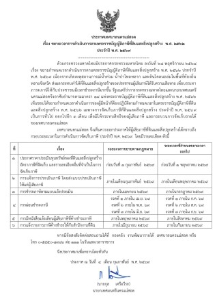 ประกาศเทศบาลนครแม่สอด เรื่อง การขยายระยะเวลาดำเนินการตามพระราชบัญญัติที่ดินและสิ่งปลูกสร้าง พ.ศ. 2562 ประจำปี พ.ศ. 2569