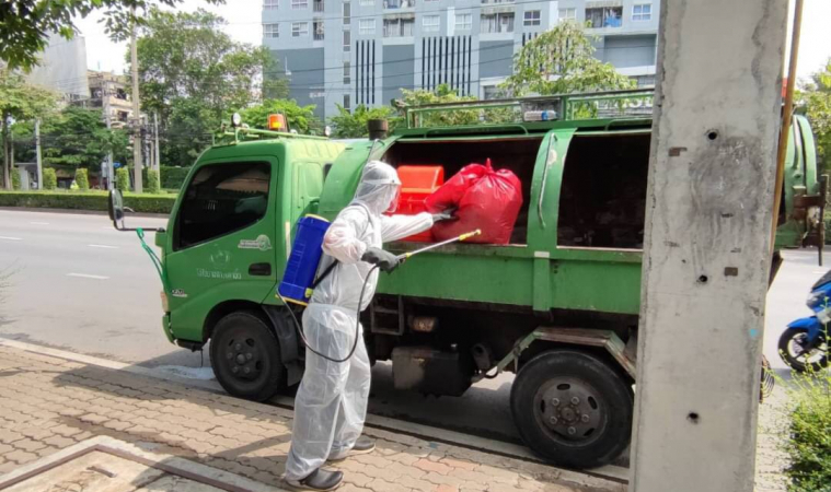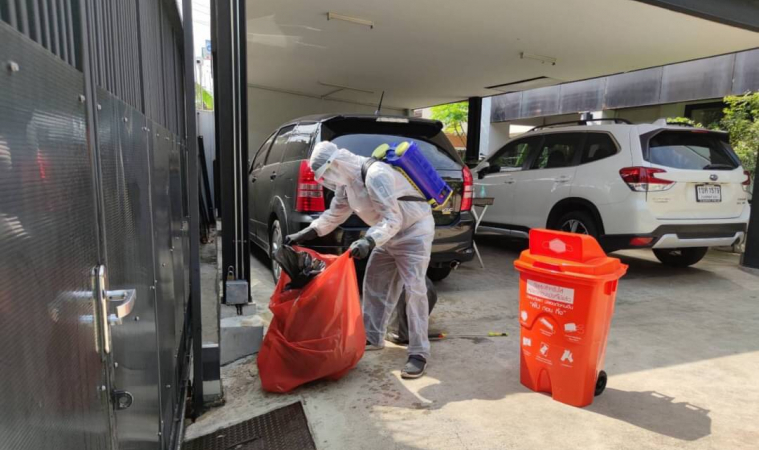 ที่ผ่านมา ส่งเจ้าหน้าที่ให้คำแนะนำให้วางขยะติดเชื้อโควิดไว้ในบริเวณบ้าน แจ้งสำนักงานเขต เพื่อประสานบริษัท กรุงเทพธนาคม เข้าจัดเก็บอย่างถูกหลัก นำไปทำลายตามกระบวนการกำจัดขยะติดเชื้อ ซึ่งผู้ปฏิบัติงานเก็บขนมูลฝอยจะสวมชุดป้องกันติดเชื้อเพื่อความปลอดภัย ความถี่การเข้าจัดเก็บตามบ้านผู้ป่วย 50 สนง.เขตจะพิจารณาจากปริมาณขยะและสมาชิกในบ้านของผู้ป่วยโควิด