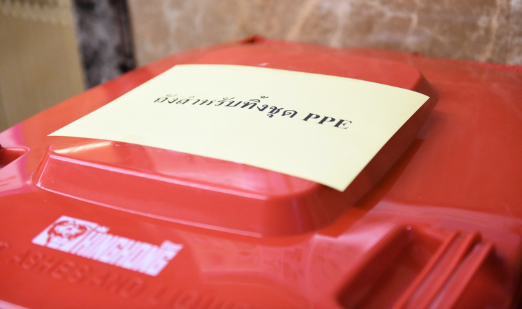 ปัจจุบัน กทม.ได้ตั้งวางถังรองรับหน้ากากอนามัยเป็นการเฉพาะ (สีส้ม) พร้อมถุงขยะสีแดงสำหรับใส่หน้ากากอนามัยในพื้นที่สาธารณะ 1,000 จุด ประกอบด้วย สำนักงานเขต ศูนย์บริการสาธารณสุข กทม. รพ.สังกัด กทม. ศาลาว่าการ กทม. (เสาชิงช้า) ศาลาว่าการ กทม. (ดินแดง) โรงเรียนสังกัด กทม. ศูนย์กีฬา กทม. ศูนย์เยาวชน กทม. สถานีดับเพลิง สวนสาธารณะ รวมถึงสถานที่สาธารณะที่เหมาะสม เช่น ตลาด วัด ชุมชน บริเวณหน้าห้างสรรพสินค้า อาคารสำนักงาน และเคหะชุมชนต่างๆ ประชาชนสามารถนำขยะหน้ากากไปทิ้งได้ แต่ละเขตตั้งชุดปฏิบัติการเฉพาะกิจจัดเก็บหน้ากากอนามัยใช้แล้ว รวมทั้งให้สำนักงานเขตประชาสัมพันธ์การทิ้งขยะติดเชื้ออย่างถูกวิธีเพื่อลดความเสี่ยงแพร่ระบาด