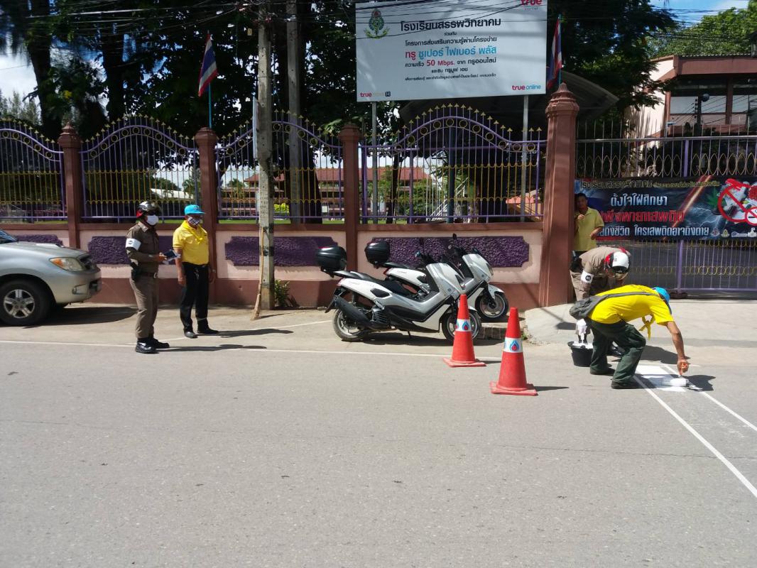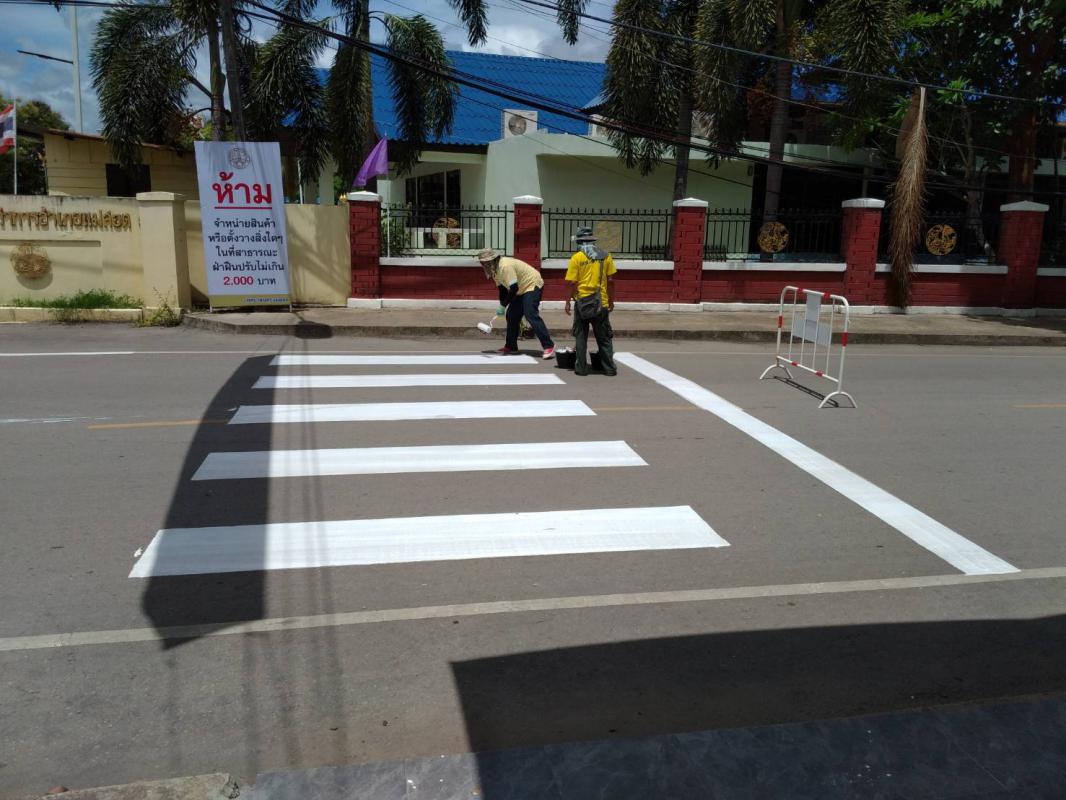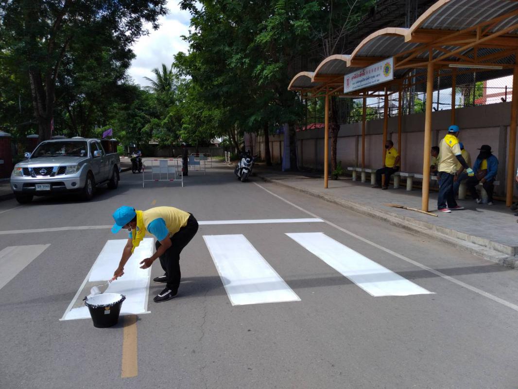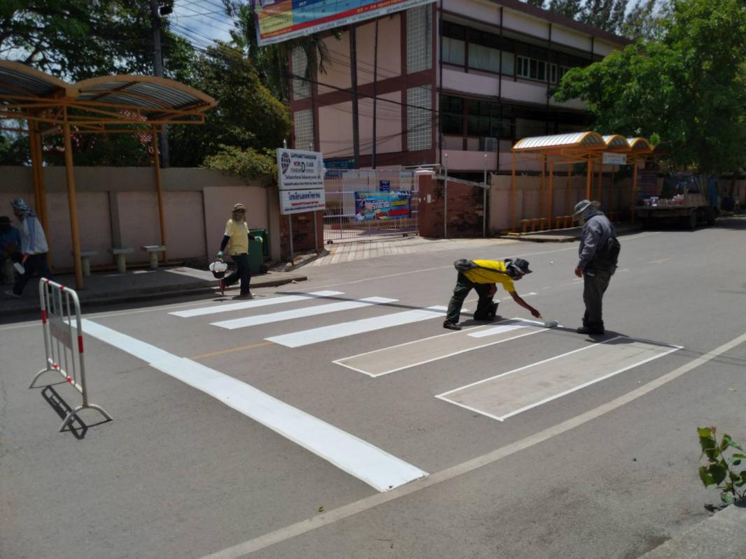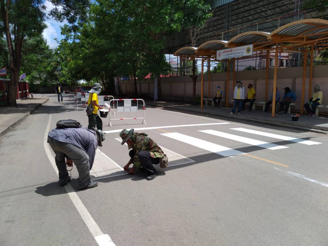 งานสาธารณูปโภค ฝ่ายการโยธา ร่วมกิจกรรมจิตอาสาร่วมกับงานจราจร สภ.แม่สอด ตีเส้นจราจรทางม้าลาย เพื่อเตรียมความพร้อมสำหรับการเปิดเรียนวันแรก