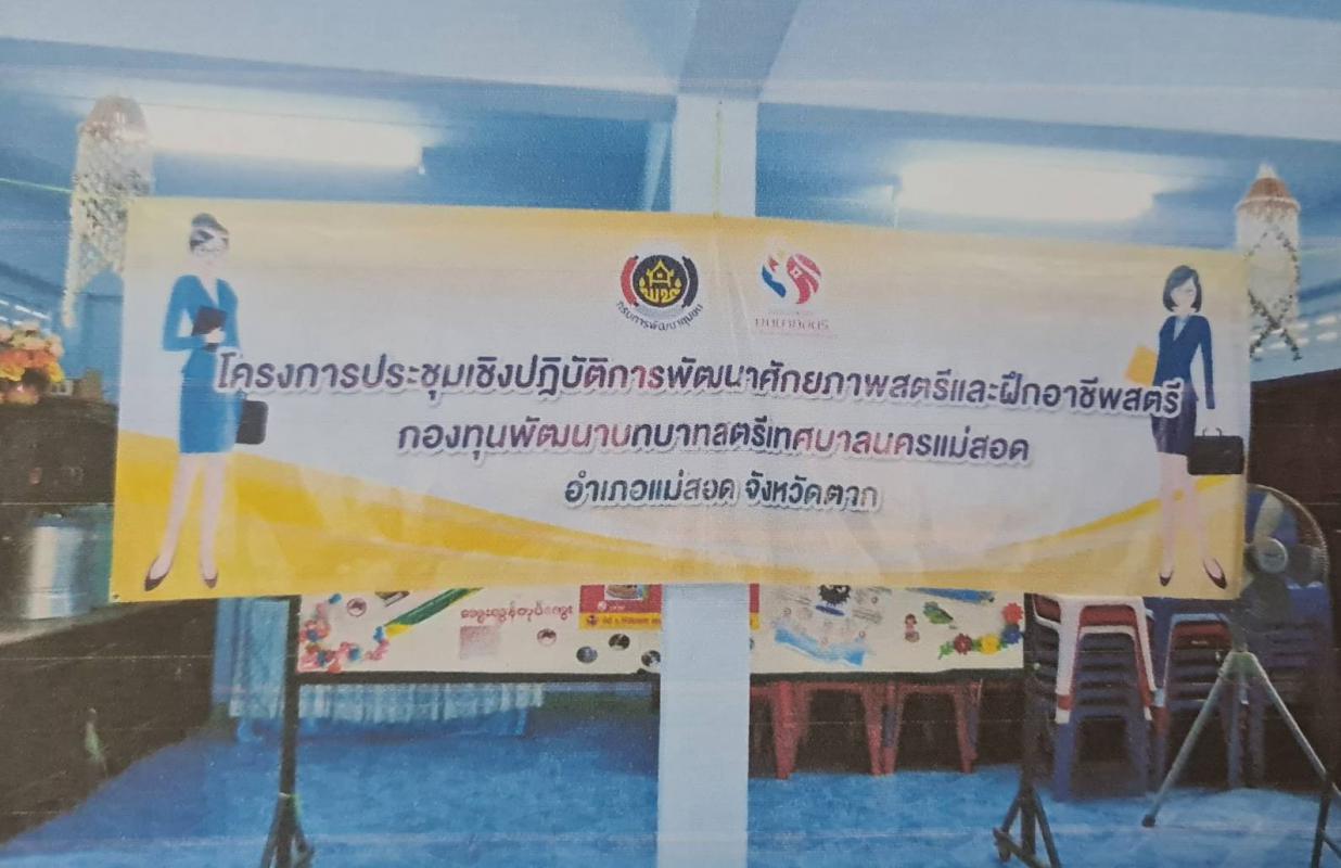 คณะกรรมการกลุ่มพัฒนาสตรี เทศบาลนครแม่สอด ได้จัดอบรมโครงการประชุมเชิงปฏิบัติการพัฒนาศักยภาพสตรีและฝึกอาชีพ เทศบาลนครแม่สอด หลักสูตร กระเป๋าลดโลกร้อน ได้รับการสนับสนุนจากกองทุนพัฒนาบทบาทสตรี ณ ทำการชุมชนมณีไพรสณฑ์ เทศบาลนครแม่สอด อำเภอแม่สอด จังหวัดตาก