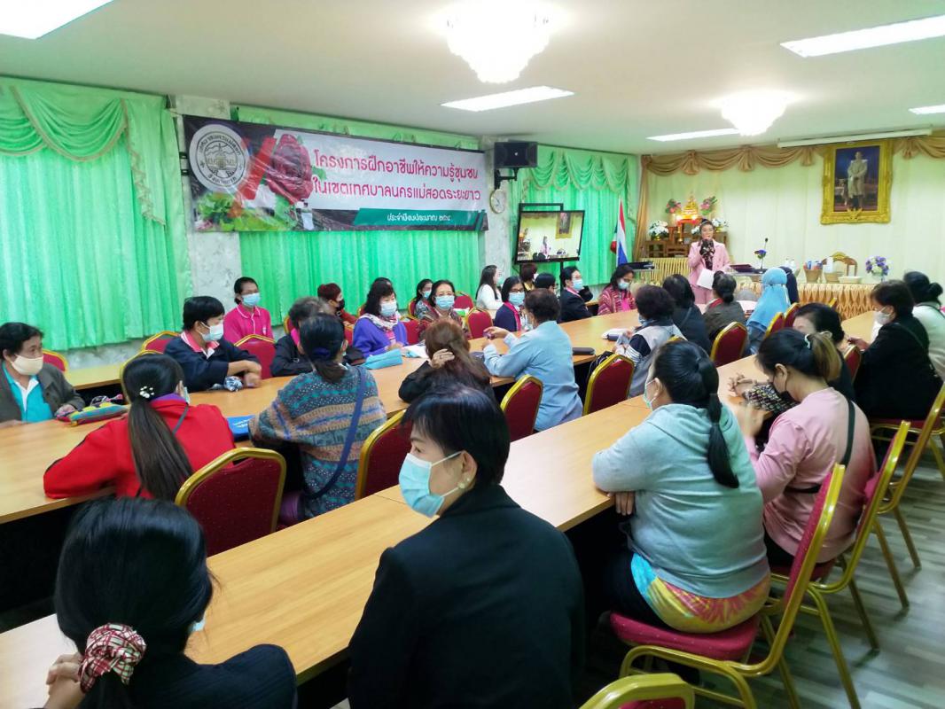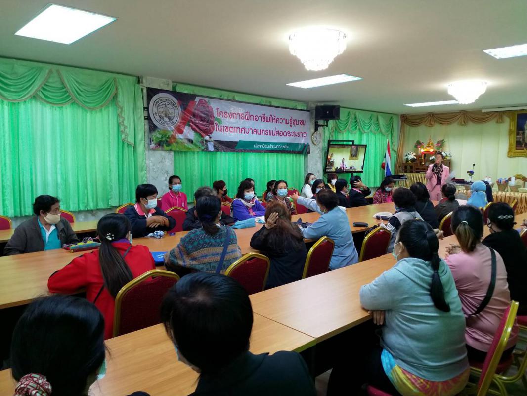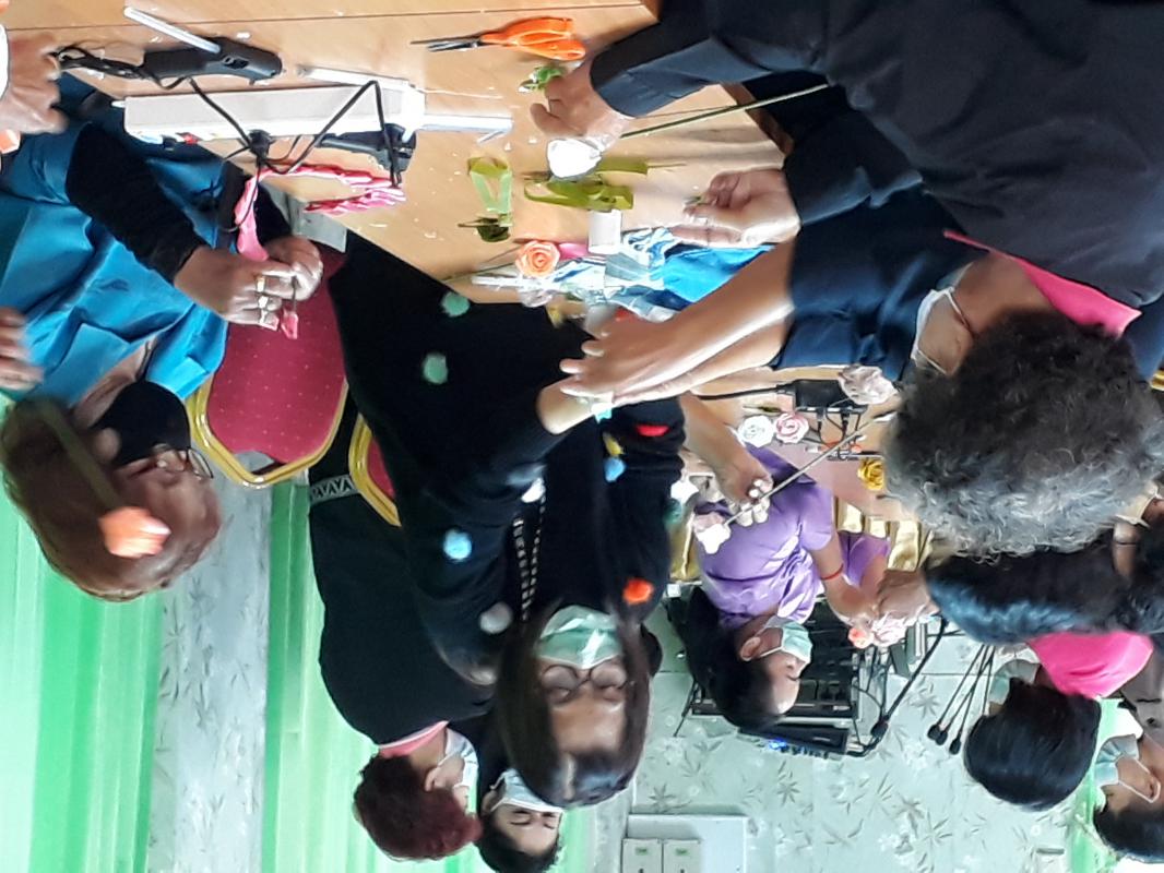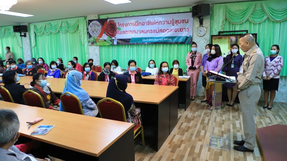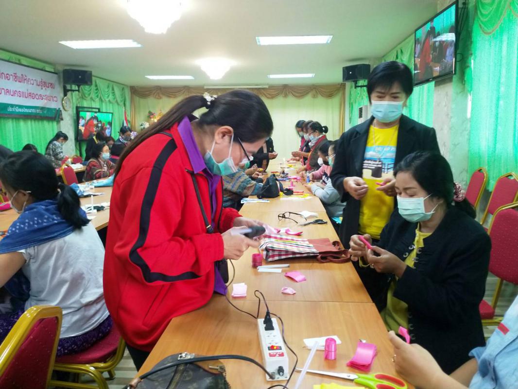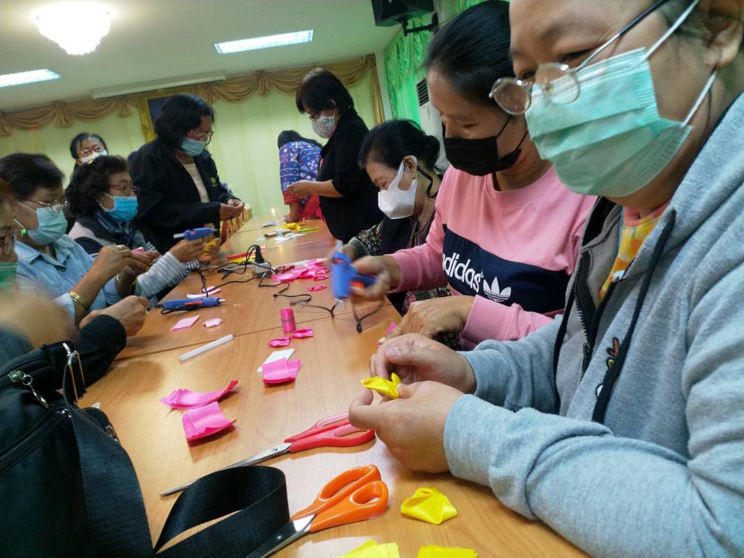 กองสวัสดิการสังคม เทศบาลนครแม่สอด ได้จัดอบรมโครงการฝึกอาชีพให้ความรู้ชุมชนในเขตเทศบาลนครแม่สอดระยะยาว ประจำปีงบประมาณ 2564 หลักสูตรที่ 1 ดอกไม้ประดิษฐ์จากริบบิ้นผ้า ณ ห้องเพชรภูมิปัญญา เทศบาลนครแม่สอด
