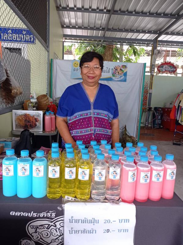 คุณทองใบ ยะคำนะ หัวหน้ากลุ่มผู้สูงอายุชุมชนประชารักษ์ ปราชญ์เรื่องการนำสมุนไพรไทยท้องถิ่นมาแปลรูปเป็นผลิตภัณฑ์ สบู่สมุนไพร และน้ำยาล้างจาน