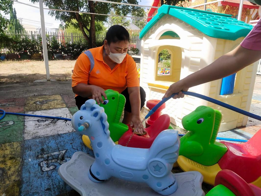 ในระหว่างวันที่ 2-9 พฤษภาคม 2565 นายสมบูญ หิรัณยโชติ ปลัดเทศบาลนครแม่สอด รักษาราชการแทน นายกเทศมนตรีนครแม่สอด มอบหมายให้นายพีระ วงค์หมอ ผู้อำนวยการกองการศึกษา นำหัวหน้าศูนย์พัฒนาเด็กเล็ก คณะครู ผู้ดูแลเด็กทุกคนในสังกัด ทำความสะอาดศูนย์พัฒนาเด็กเล็ก อาคารเรียน บริเวณโดยรอบ และอุปกรณ์เครื่องเล่นทุกชนิด