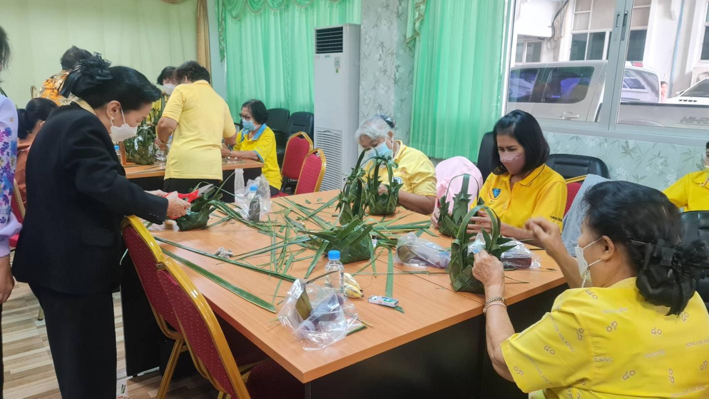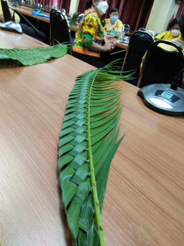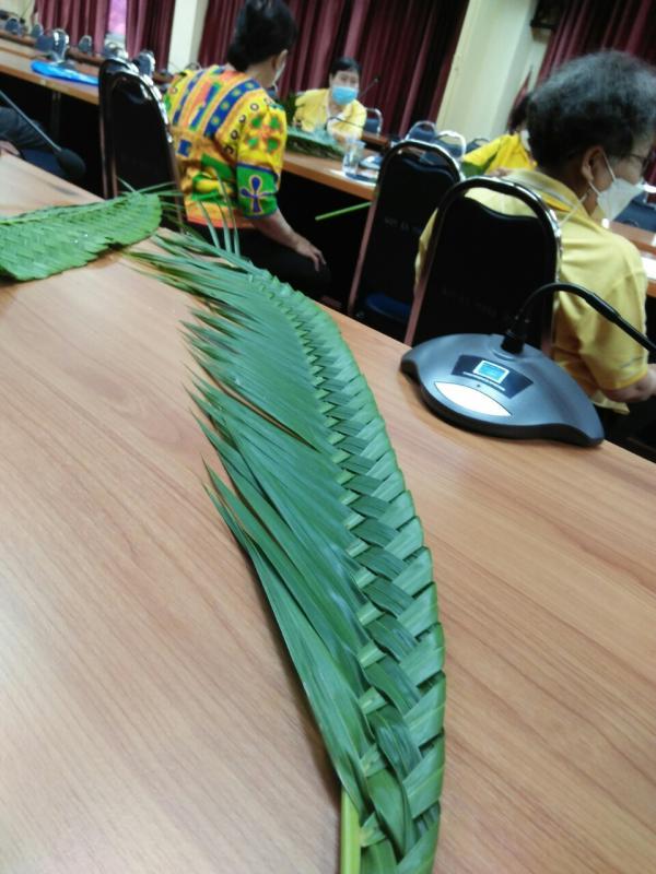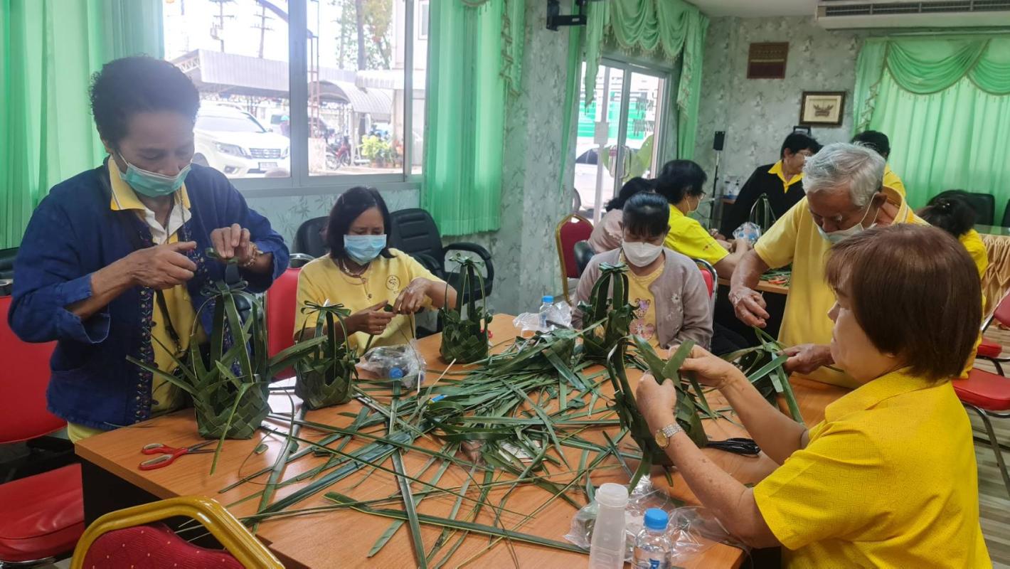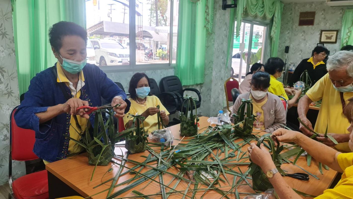 คุณอัมพร แสงราช ผู้สูงอายุชุมชนสองแคว1 ปราชญ์เรื่อง สานใบมะพร้าว และจัดทำตุง