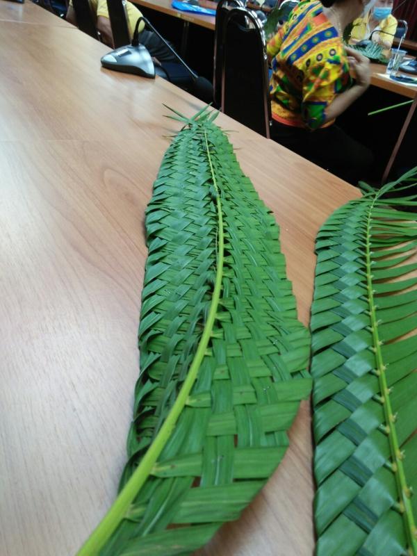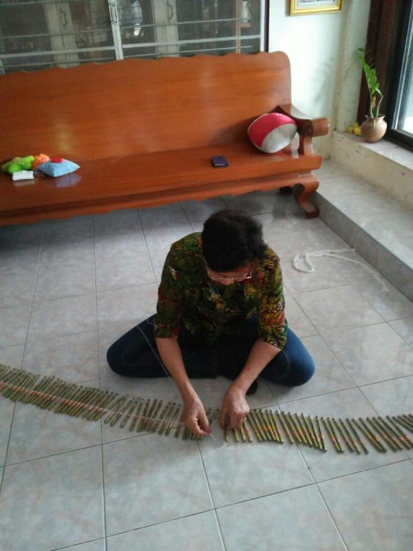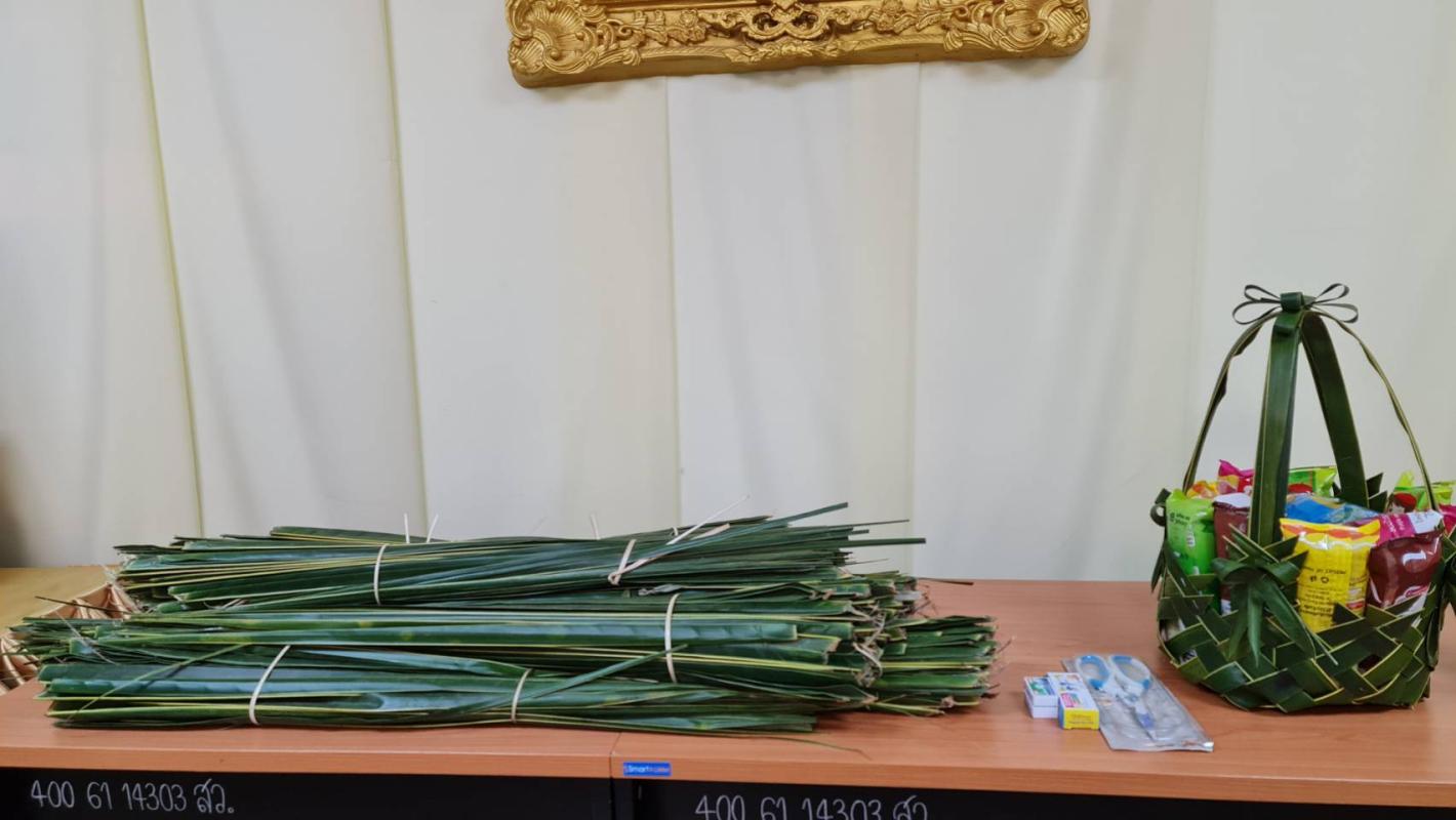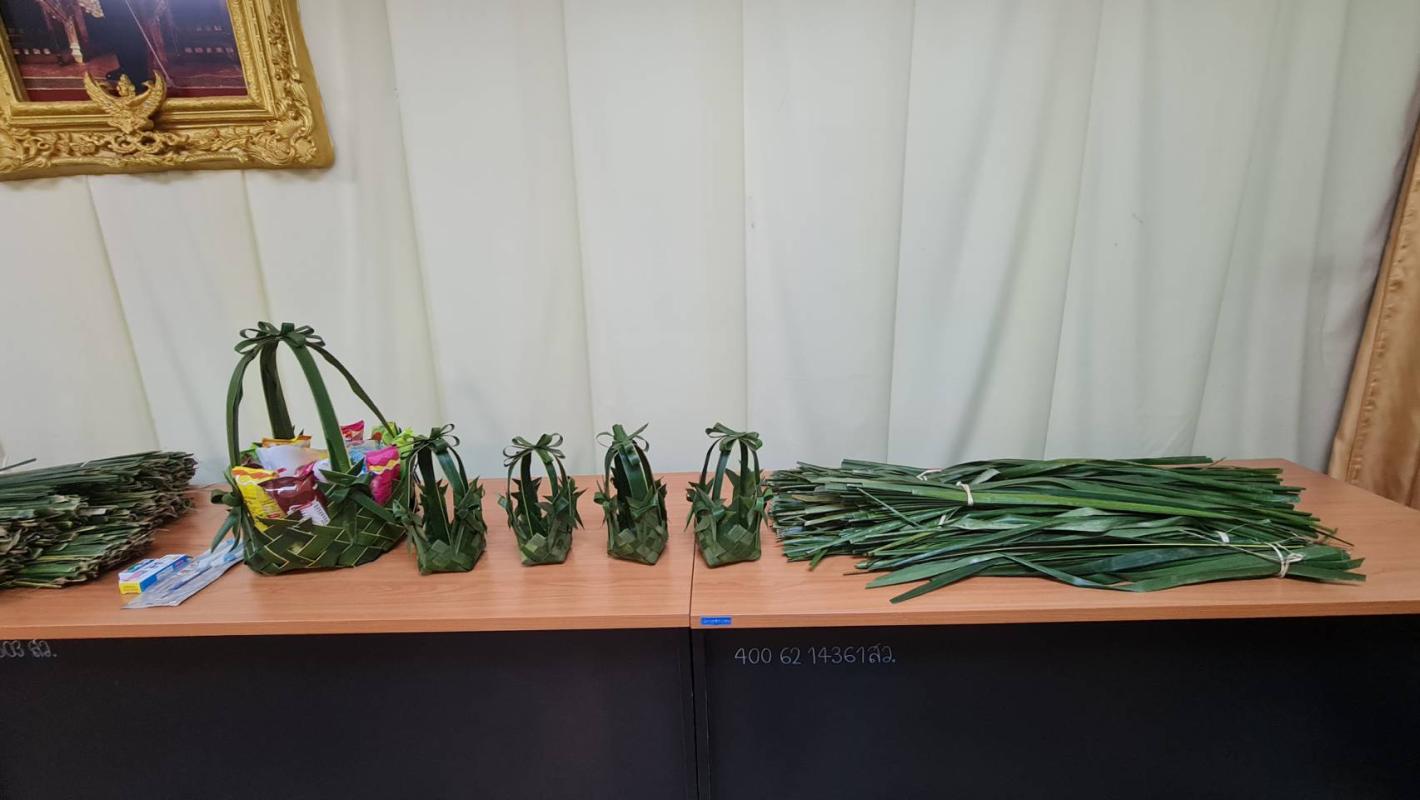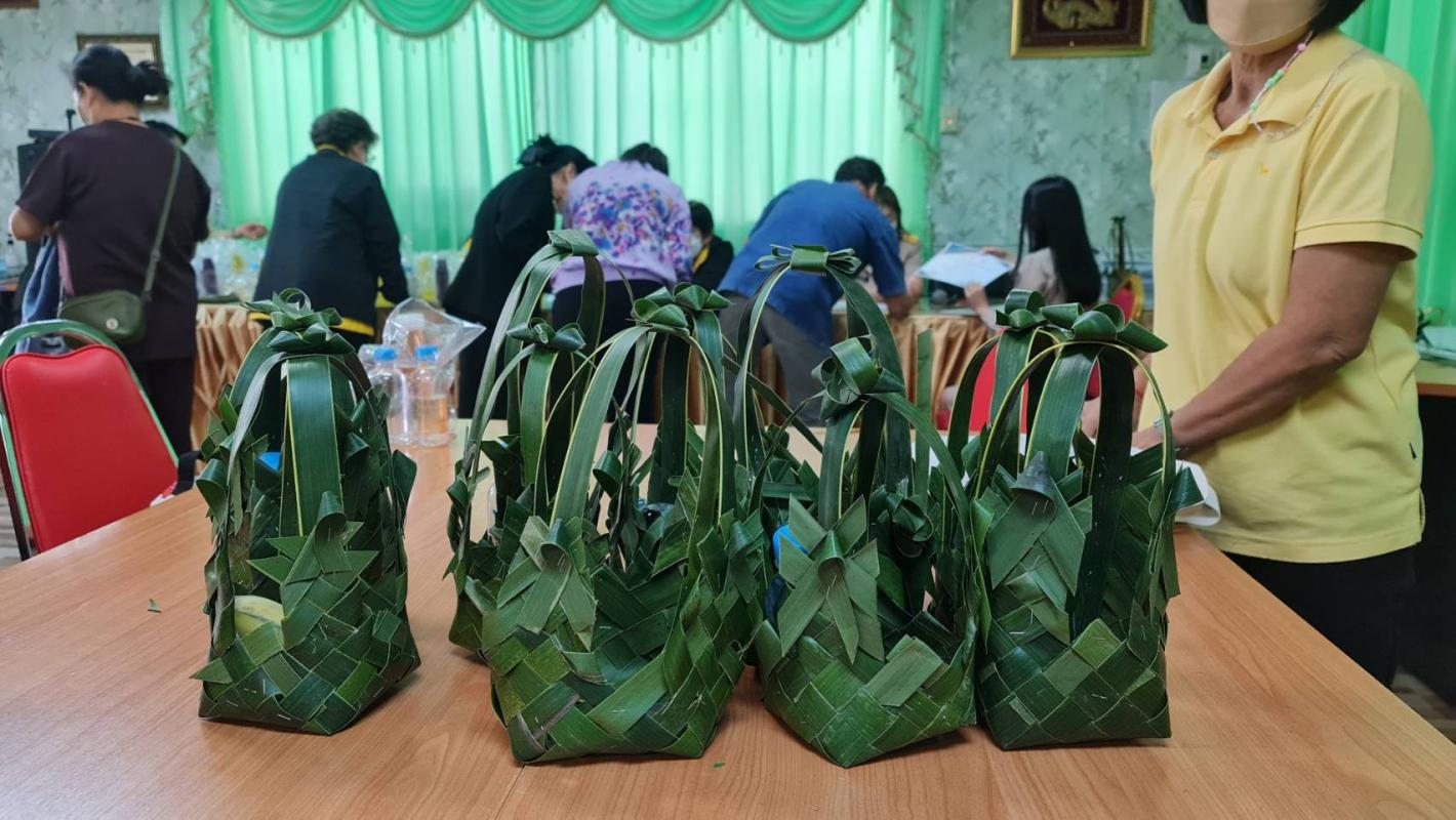 คุณอัมพร แสงราช ผู้สูงอายุชุมชนสองแคว1 ปราชญ์เรื่อง สานใบมะพร้าว และจัดทำตุง