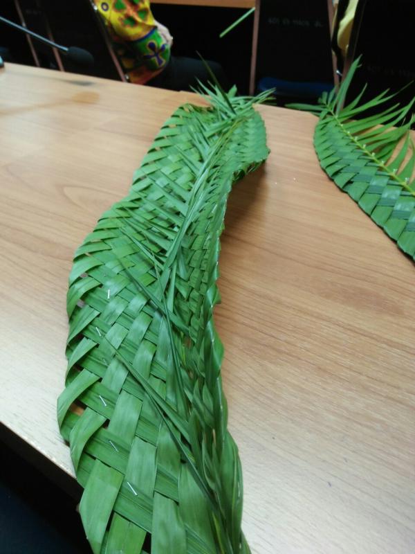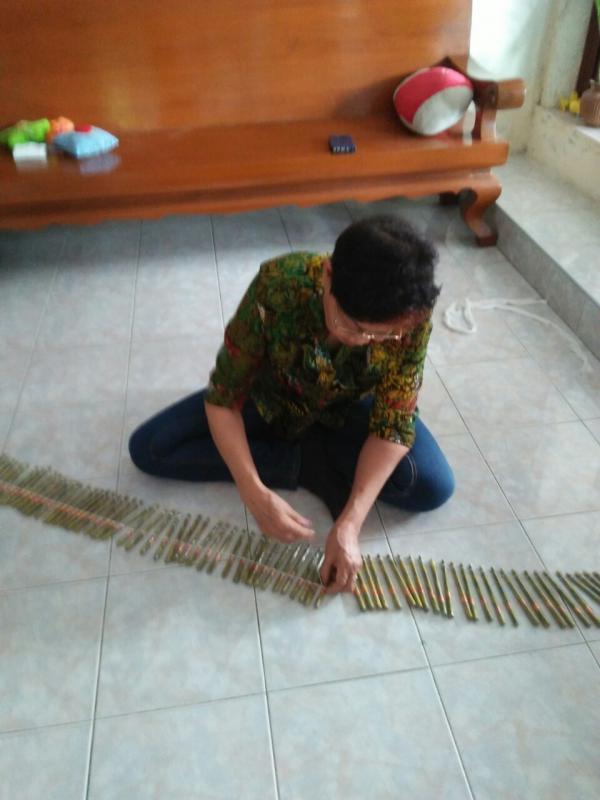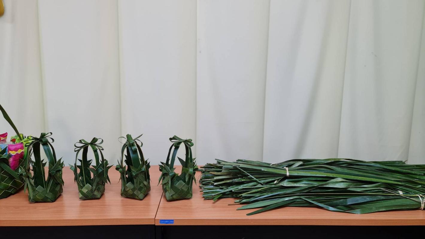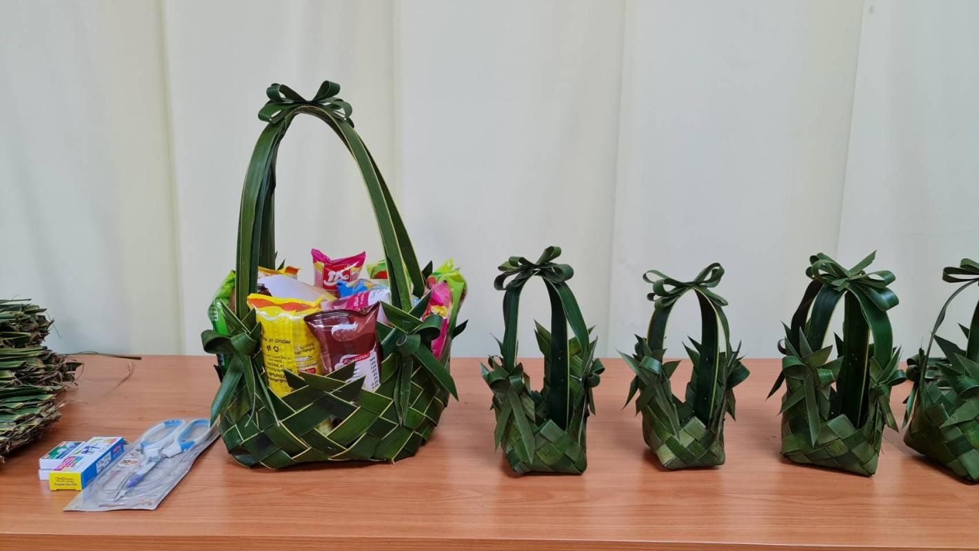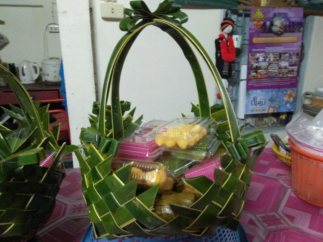 คุณอัมพร แสงราช ผู้สูงอายุชุมชนสองแคว1 ปราชญ์เรื่อง สานใบมะพร้าว และจัดทำตุง