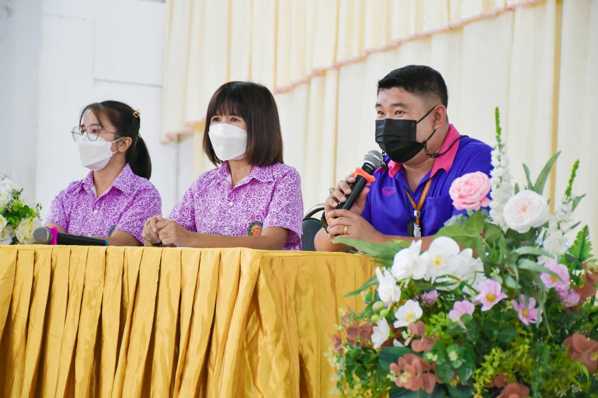 นางสาวนิภาภรณ์ อินนาคกูล ผู้อำนวยการสถานศึกษา พร้อมด้วยรองผู้อำนวยการสถานศึกษา ครูฝ่ายงานต่างๆ ร่วมจัดกิจกรรมปฐมนิเทศนักเรียนระดับชั้นมัธยมศึกษาปีที่ 4 ประจำปีการศึกษา 2565