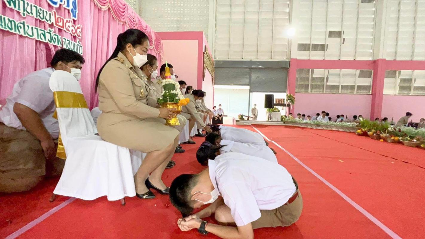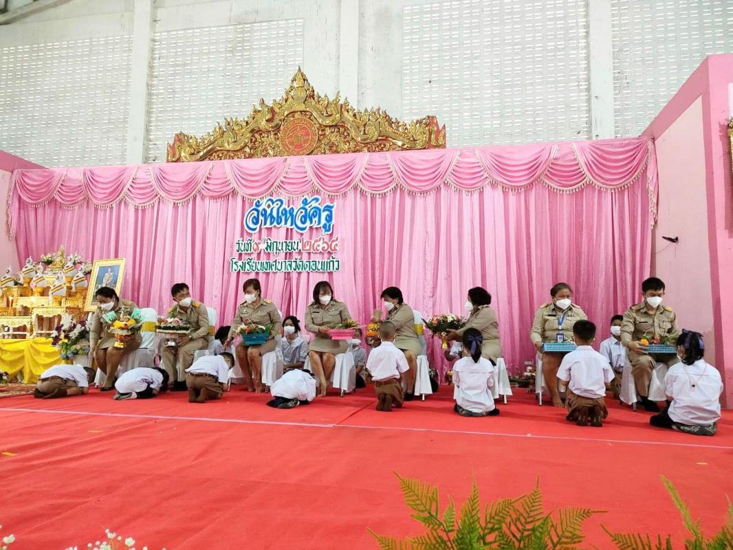 วันที่ 9 มิถุนายน 2565 เวลา 08.30 น. ณ อาคารอเนกประสงค์โรงเรียนเทศบาลวัดดอนแก้ว อำเภอแม่สอด จังหวัดตาก ได้จัดกิจกรรมพิธีไหว้ครู ประจำปีการศึกษา 2565 เพื่อนักเรียนได้แสดงความเคารพต่อครู บาอาจารย์ และระลึกถึงพระคุณของคุณครู ครูอาจารย์ผู้ประสิทธิ์วิชาความรู้มาให้ โดยมี นางวาสนา เบ้านี ผู้อำนวยการสถานศึกษา เป็นประธานในพิธี โดยมีคณะครูและนักเรียนร่วมงานอย่างพร้อมเพรียงกัน
