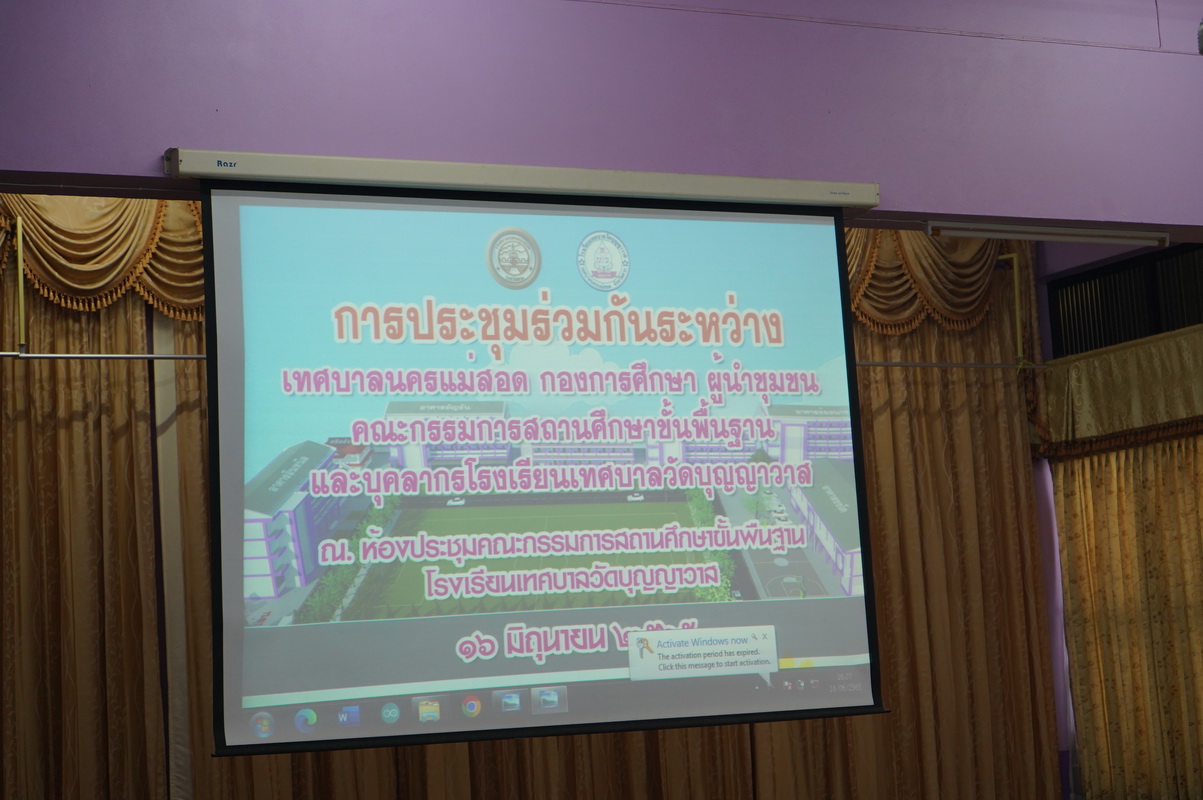 วันที่ 16 มิถุนายน 2565 เวลา 16.00 น. ณ ห้องประชุมคณะกรรมการสถานศึกษา โรงเรียนเทศบาลวัดบุญญาวาส ว่าที่ร้อยตรีประเสริฐ ปวงละคร นายกเทศมนตรีนครแม่สอด มอบหมายให้นายกรณพงศ์ คงปาน รองนายกเทศมนตรีนครแม่สอด พร้อมด้วยนายธนาพล ศิริกุลปิยรัตน์ รองปลัดเทศบาลนครแม่สอด และนายพีระ วงค์หมอ ผู้อำนวยการกองการศึกษา เข้าร่วมการประชุมร่วมกันระหว่างเทศบาลนครแม่สอด ผู้นำชุมชน คณะกรรมการสถานศึกษาขั้นพื้นฐาน คณะครูและบุคลากรภายในสถานศึกษา และได้รับเกียรติจากสมาชิกสภาเทศบาลนครแม่สอด ผู้นำชุมชน คณะกรรมการสถานศึกษาขั้นพื้นฐาน และคณะครูและบุคลากรโรงเรียนวัดบุญญาวาสเข้าร่วมการประชุมในครั้งนี้ โดยได้รับการต้อนรับอย่างดีจากนางสาวชมพูนุช ปันทิ ผู้อำนวยการสถานศึกษา โรงเรียนเทศบาลวัดบุญญาวาส