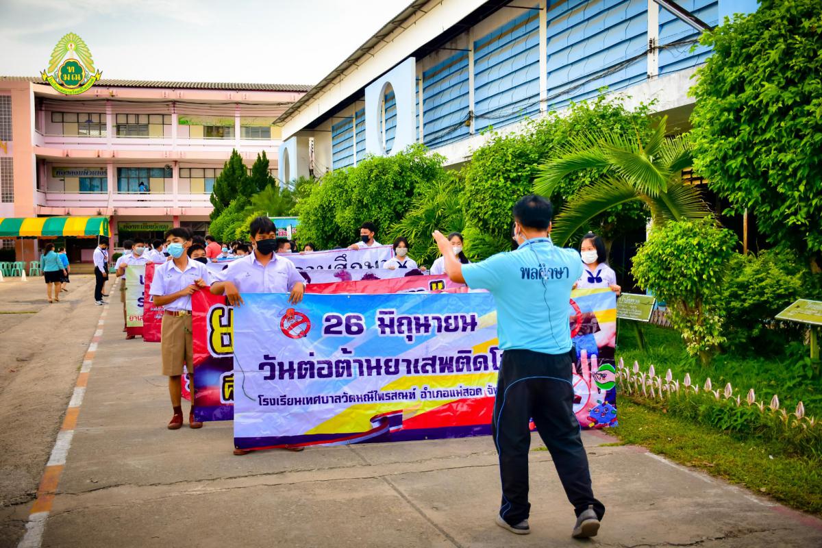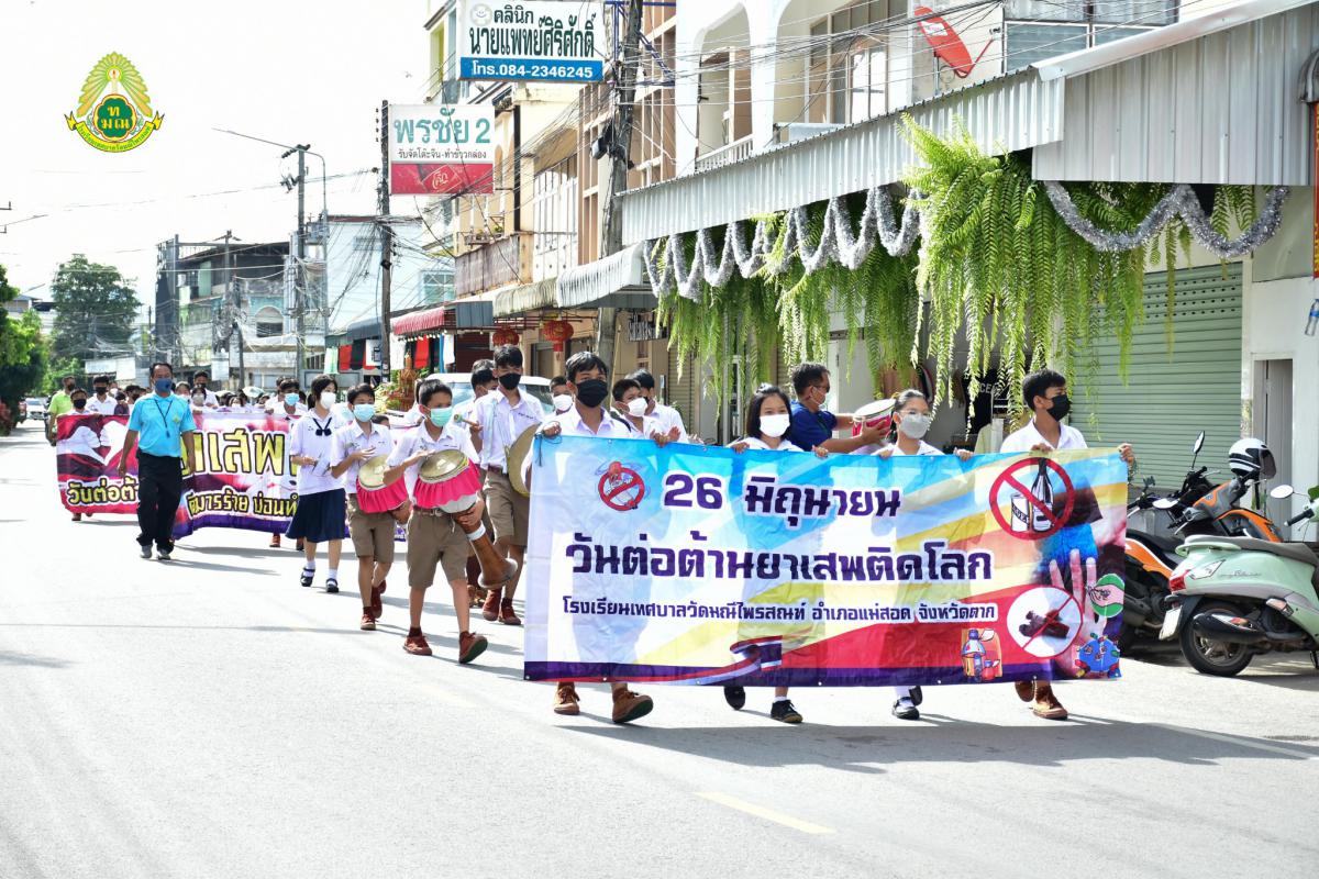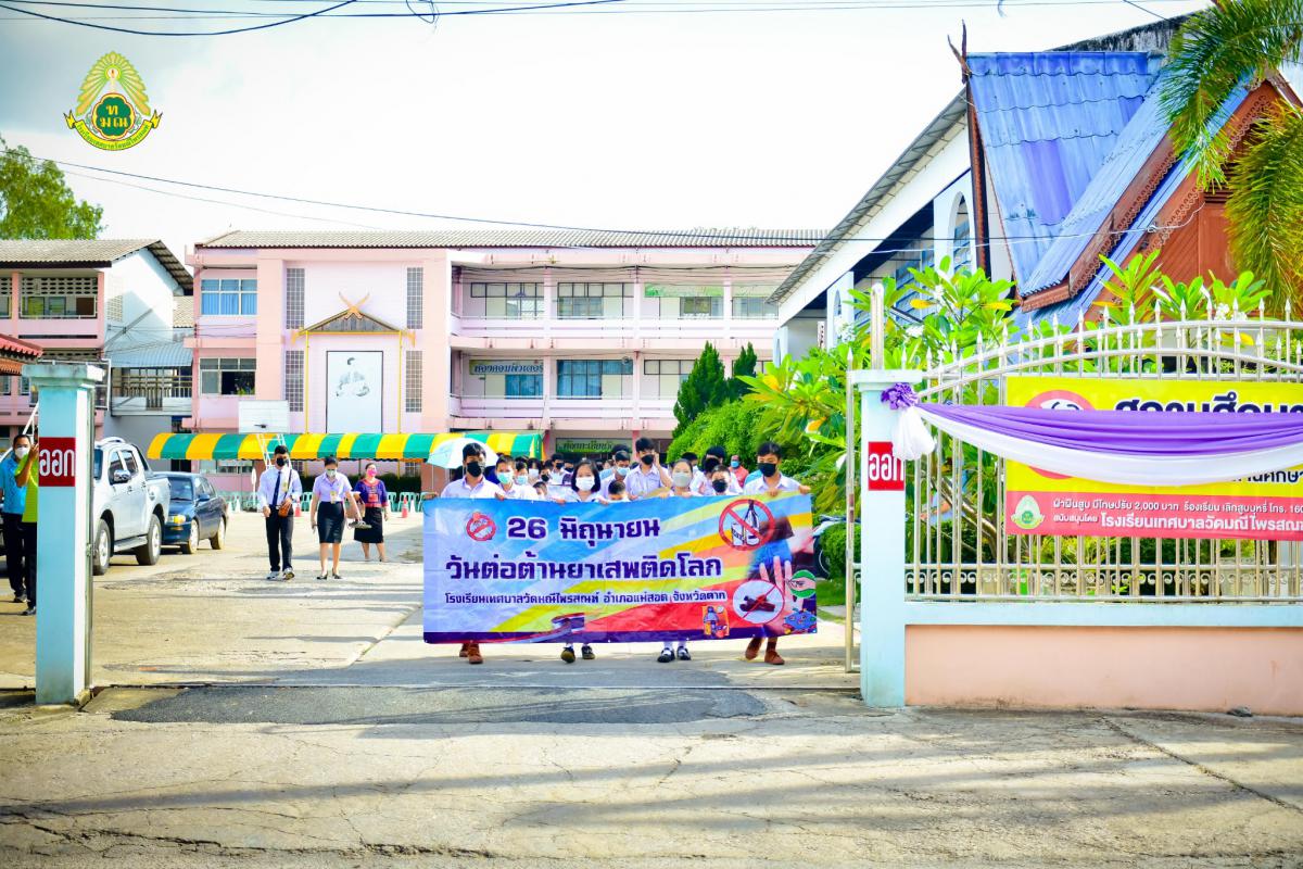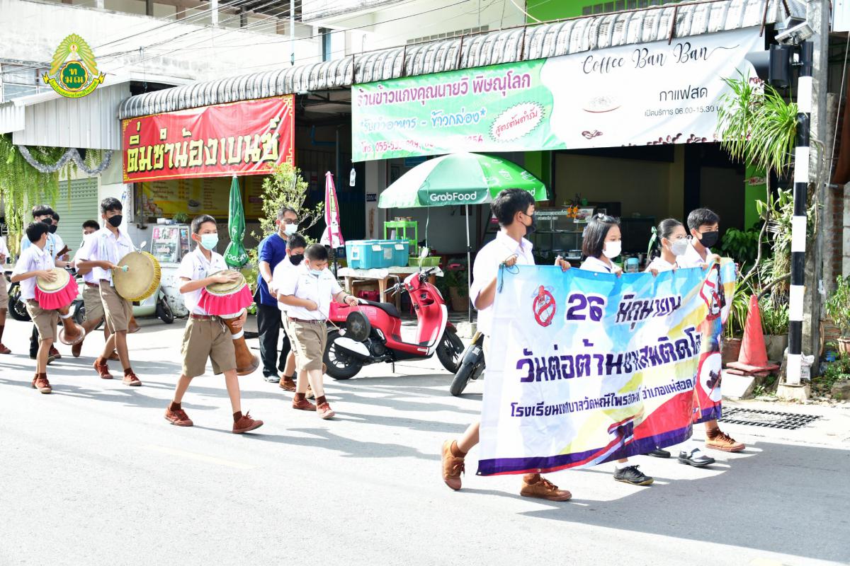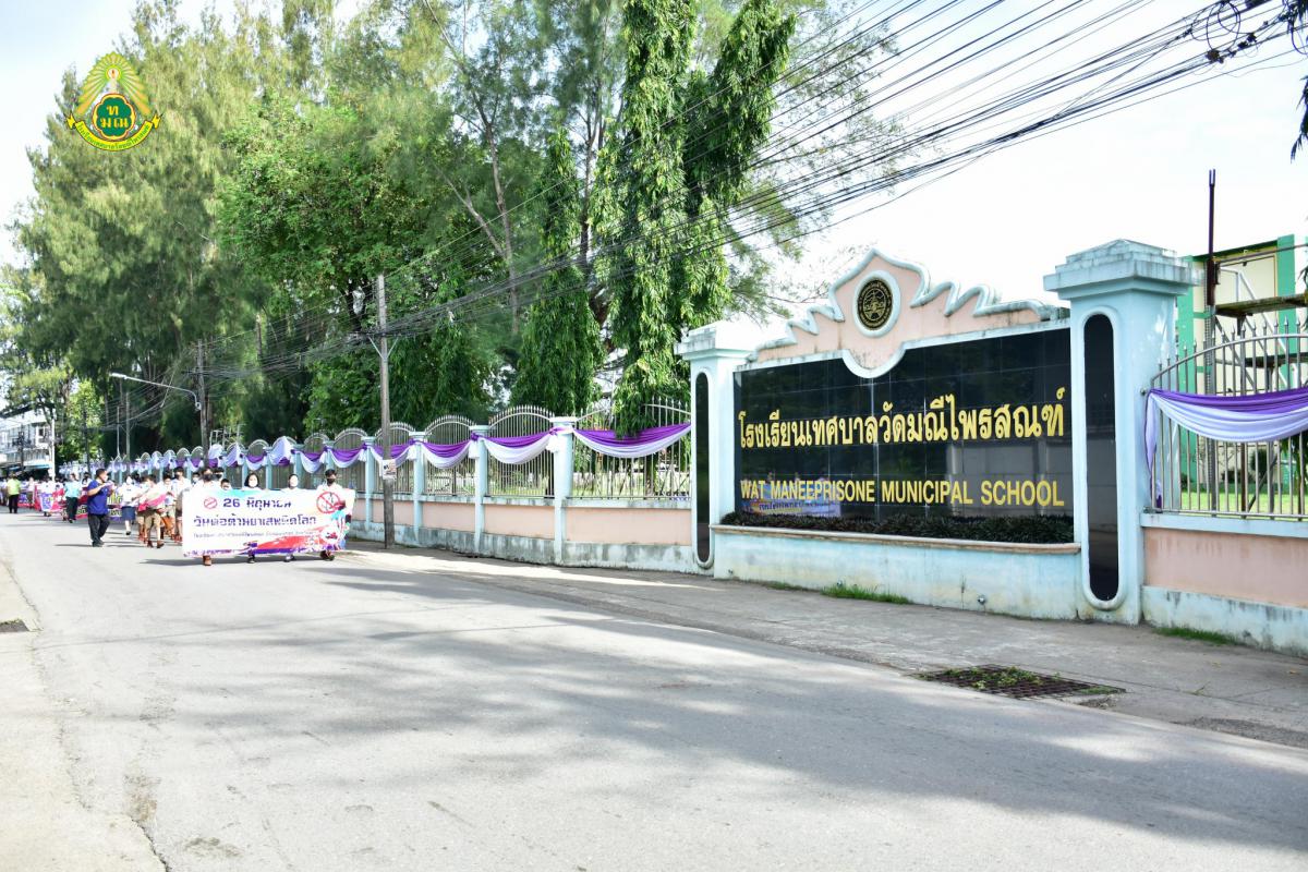 วันที่ 24 มิถุนายน 2565 เวลา 09.00 น. โรงเรียนเทศบาลวัดมณีไพรสณฑ์ นำโดยนายสุเทพ วันฟั่น ผู้อำนวยการสถานศึกษา จัดกิจกรรมเดินรณรงค์ต่อต้านยาเสพติด เนื่องในวันต่อต้านยาเสพติดโลก เพื่อให้นักเรียนและประชาชนในเขตชุมชนใกล้เคียง ตระหนักถึงพิษภัยของยาเสพติด และเห็นความสำคัญของการต่อต้านยาเสพติด รวมไปถึงโทษภัยของยาเสพติด โดยเคลื่อนแถวขบวนเดินรณรงค์ต่อต้านยาเสพติด ไปทางตลาดบ้านเหนือ