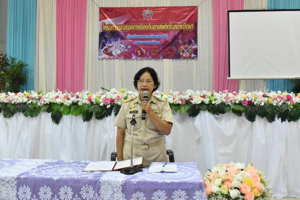 วันที่ 27 มิถุนายน 2565 เวลา 13.00 น. ณ โรงเรียนเทศบาลวัดชุมพลคีรี อำเภอแม่สอด จังหวัดตาก นางอัมรินทร์ จันทระ ผู้อำนวยการสถานศึกษา เป็นประธานในพิธีเปิดการอบรมการจัดกิจกรรมอบรมการป้องกันยาเสพติดในสถานศึกษา และได้รับเกียรติจาก ร.ต.ต.เอกวัสส์ พอกพูนธนนันท์ รอง สว.(จร.) สภ.แม่สอด เป็นวิทยากรให้ความรู้แก่นักเรียนโรงเรียนเทศบาลวัดชุมพลคีรี ชั้นมัธยมศึกษาปีที่ 1-3 เพื่อให้นักเรียนตระหนักถึงพิษภัยของยาเสพติด และเห็นความสำคัญของการต่อต้านยาเสพติด รวมไปถึงโทษภัยของยาเสพติด ได้รับความร่วมมือจากเด็กนักเรียนเป็นอย่างดี