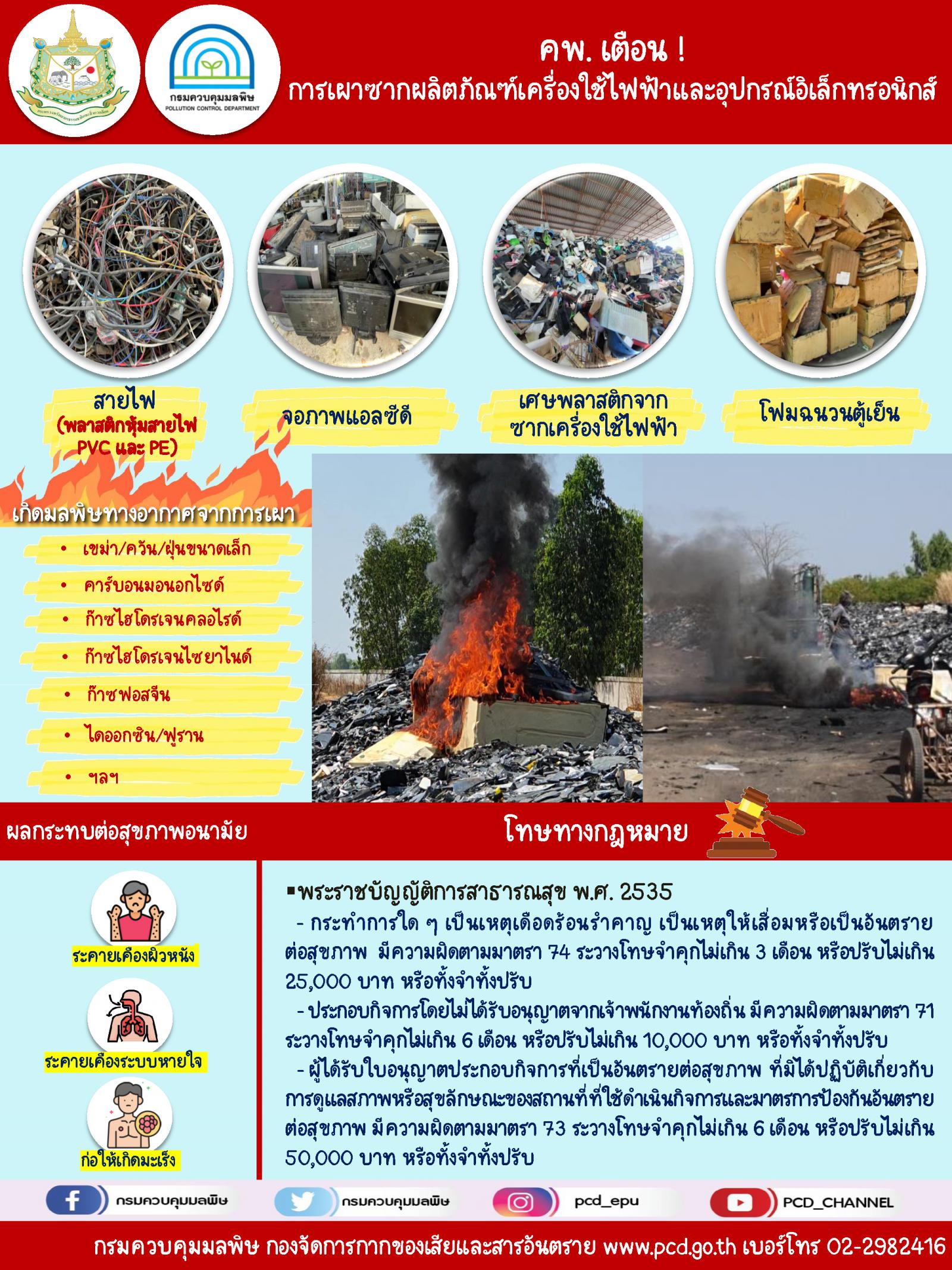 ประชาสัมพันธ์การห้ามเผาซากผลิตภัณฑ์เครื่องใช้ไฟฟ้าและอุปกรณ์อิเล็กทรอนิกส์