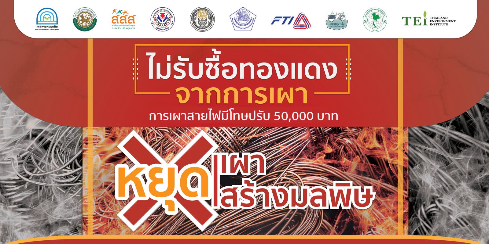 เช่น สายไฟ จอภาพแอลซีดี เศษพลาสติกจากซากเครื่องใช้ไฟฟ้า โฟม ฉนวนตู้เย็น ซึ่งก่อให้เกิดมลพิษทางอากาศจากการเผา และก่อให้เกิดผลกระทบต่อสุขภาพอนามัย มีความผิดตามพระราชบัญญัติการสาธารณสุข พ.ศ. 2535 และขอความร่วมมือร้านรับซื้อของเก่า ไม่รับซื้อทองแดงจากการเผา (การเผาสายไฟมีเทษปรับ 50,000 บาท)