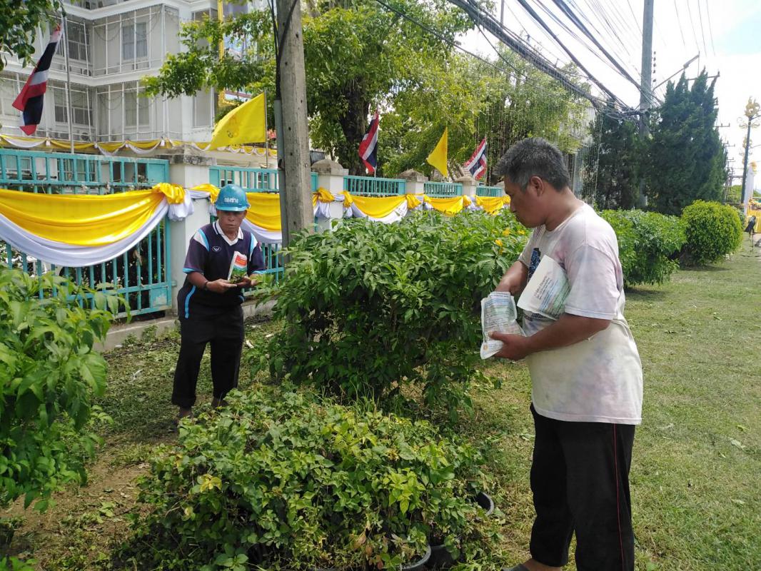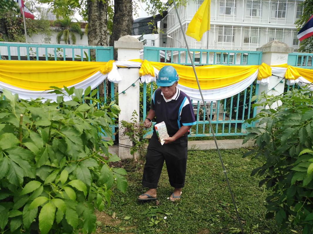 งานสวนสาธารณะ ได้ตัดหญ้าและตัดแต่งต้นไม้บริเวณสำนักงานฯ