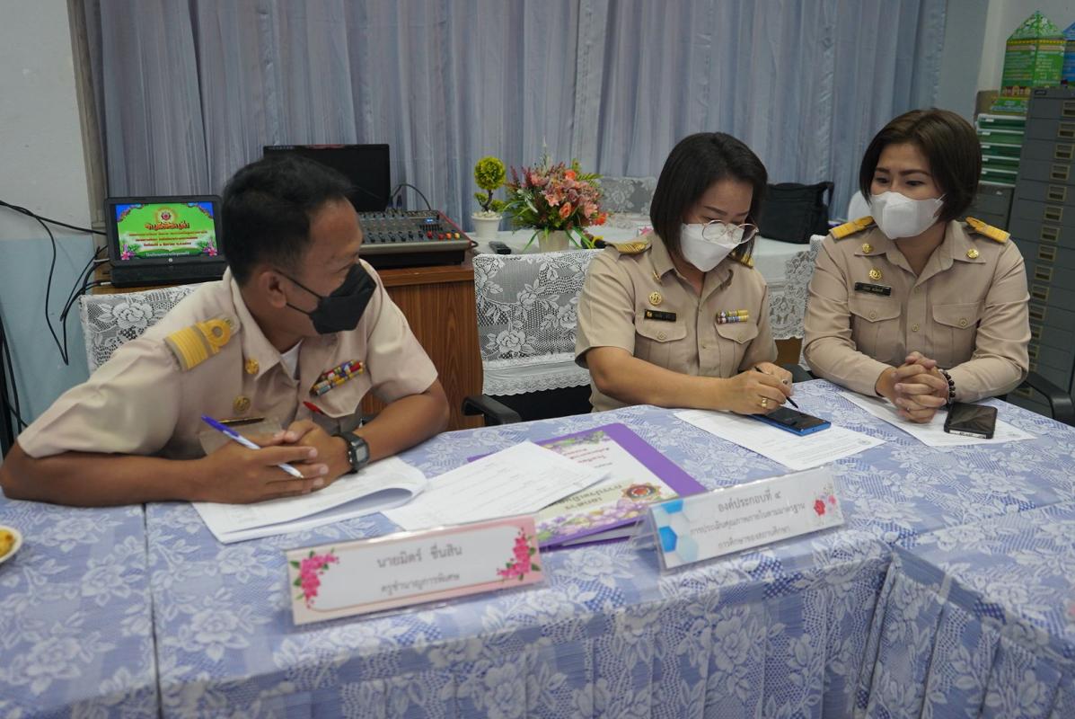 วันที่ 1 สิงหาคม 2565 เวลา 09.00 น. ณ ห้องประกันคุณภาพการศึกษาโรงเรียนเทศบาลวัดชุมพลคีรี อำเภอแม่สอด จังหวัดตาก นางอัมรินทร์ จันทระ ผู้อำนวยการสถานศึกษาโรงเรียนเทศบาลวัดชุมพลคีรีต้อนรับคณะกรรมการนิเทศ ติดตามตรวจสอบและประเมินคุณภาพการศึกษา ระดับการศึกษาขั้นพื้นฐานของสถานศึกษาในสังกัดเทศบาลครแม่สอด ประจำปี 2565