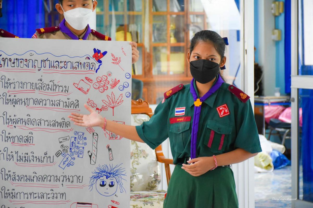 2. กิจกรรมพูดสามภาษา ประกอบด้วยภาษาไทย ภาษาอังกฤษ ภาษาพม่า ถึงโทษและให้รู้เท่าทันไม่ใช้กัญชาเพราะทำลายสมองและเป็นสิ่งเสพติด