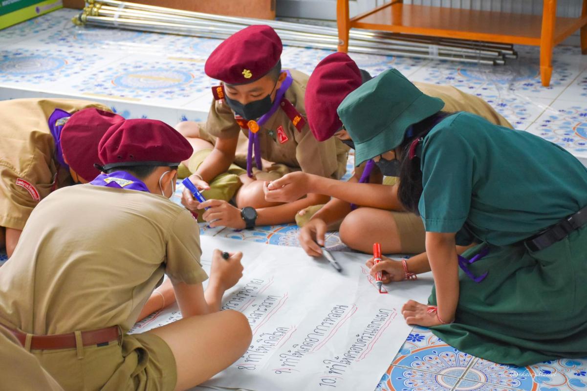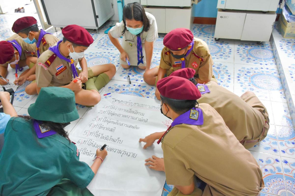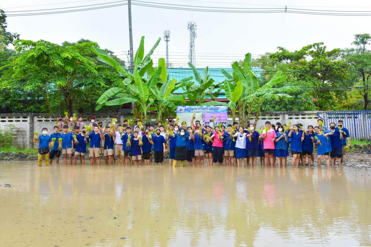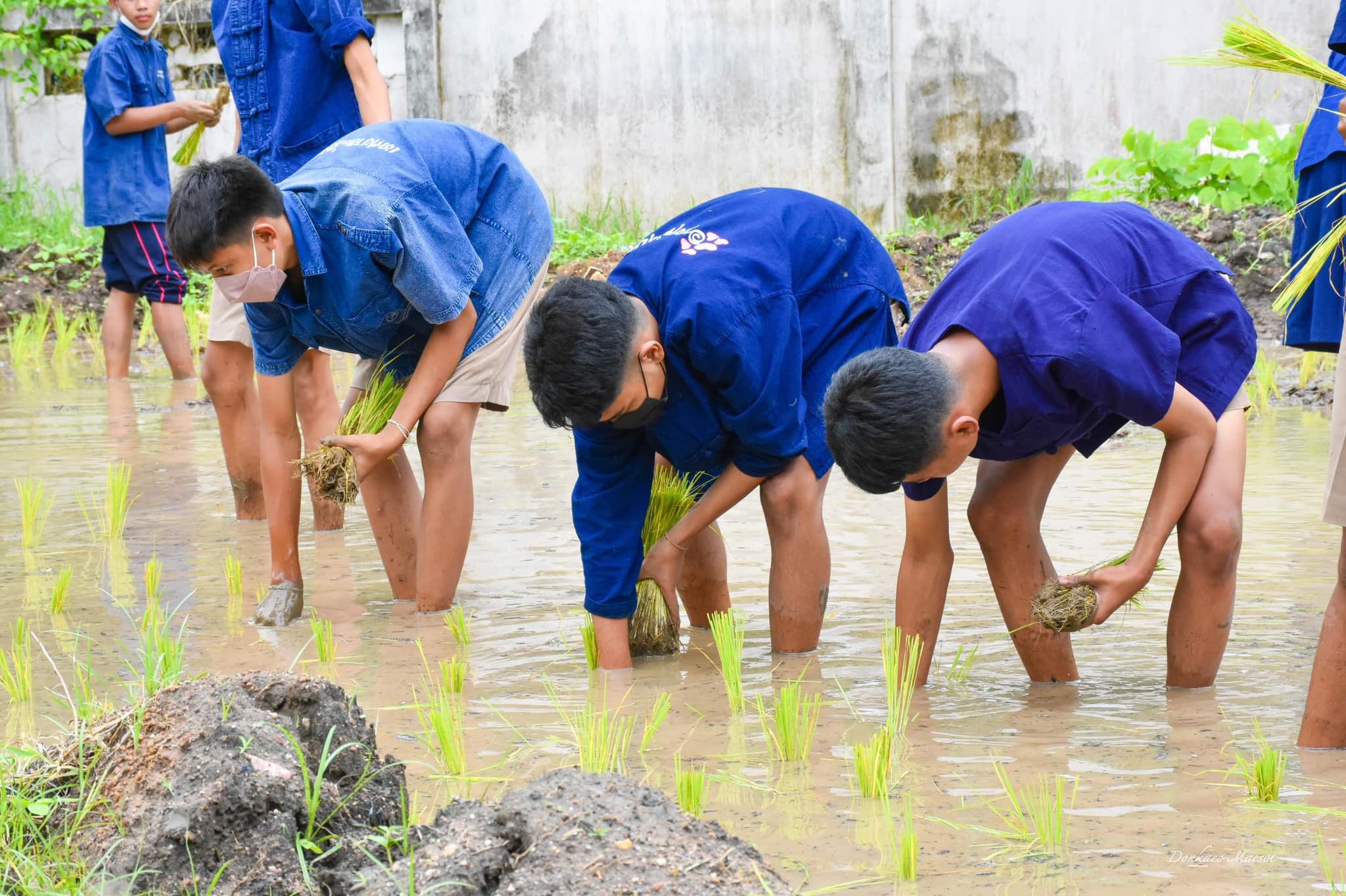 6. กิจกรรมลูกเสือจิตอาสาพระราชทานในสถานศึกษา แกนนำลูกเสือจิตอาสาน้อมนำหลักปรัชญาของเศรษฐกิจพอเพียงมาประกอบการทำนาอินทรีย์
