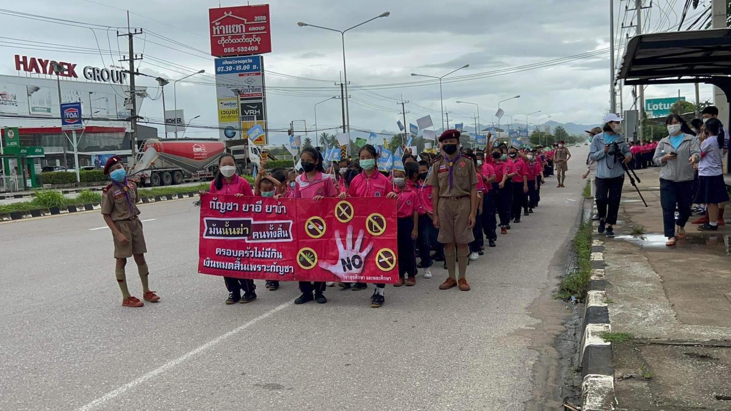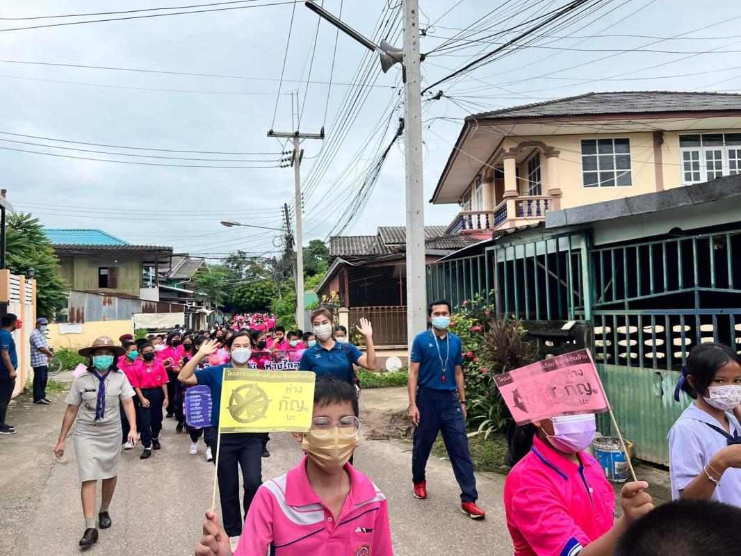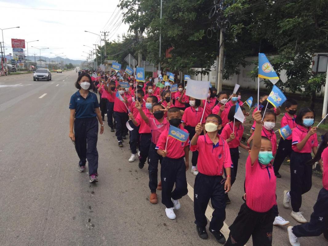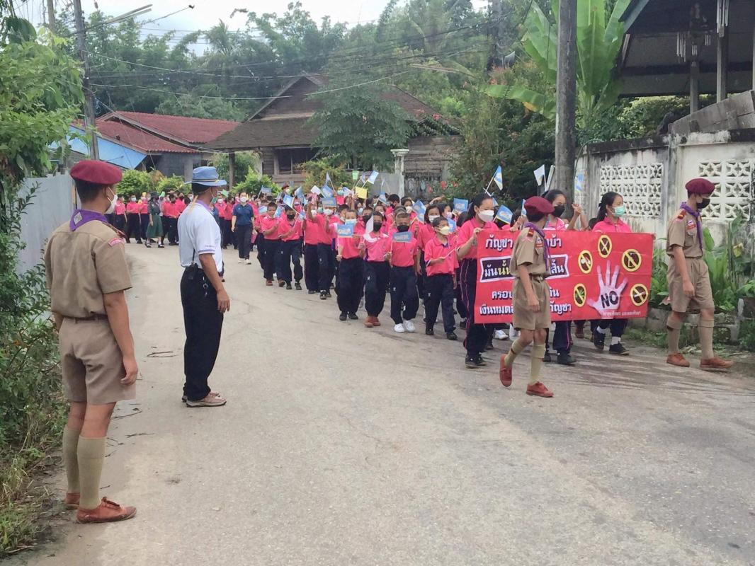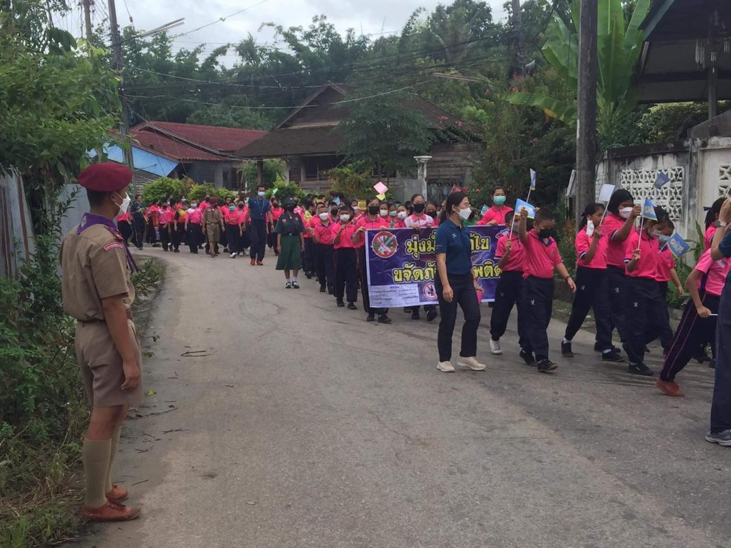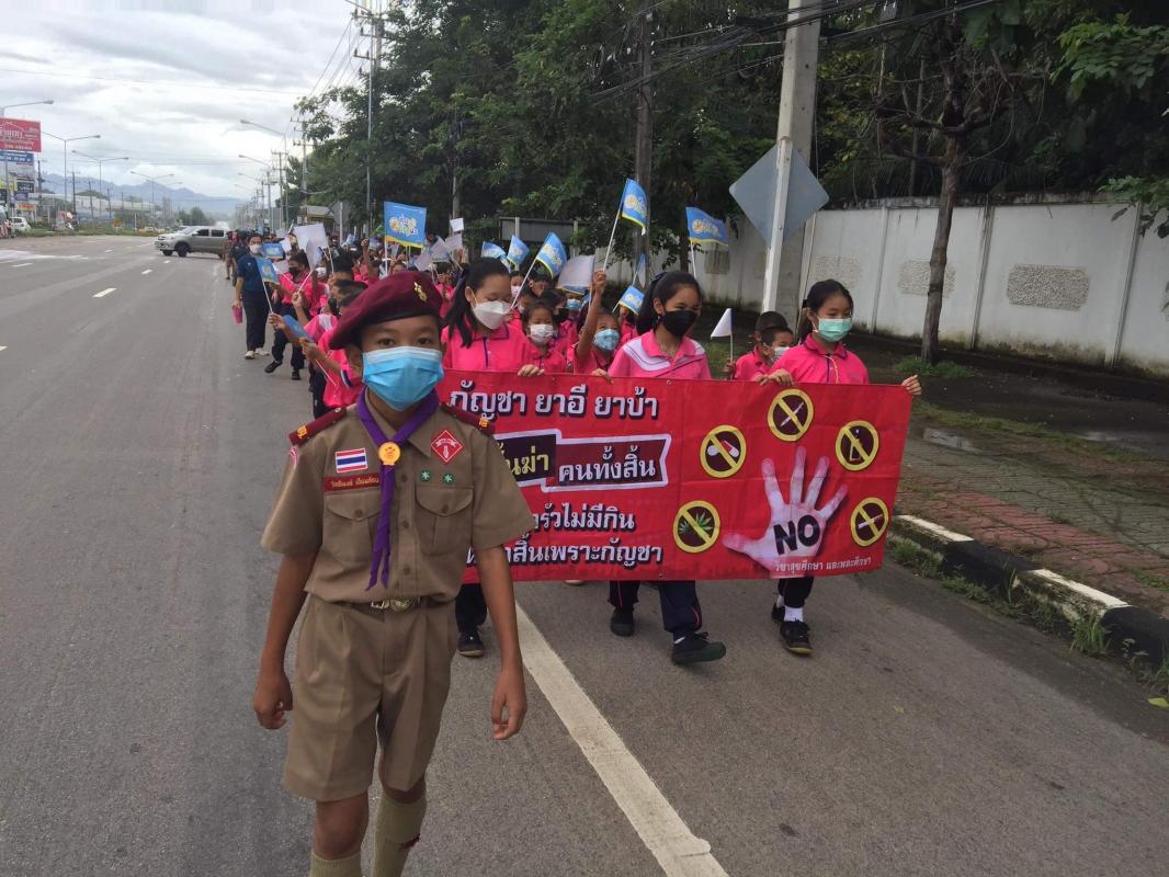 5. กิจกรรมเดินรณรงค์ต่อต้านยาเสพติดและการใช้กัญชาในสถานศึกษาและให้ความรู้แก่ประชาชนในเขตบริการของชุมชน