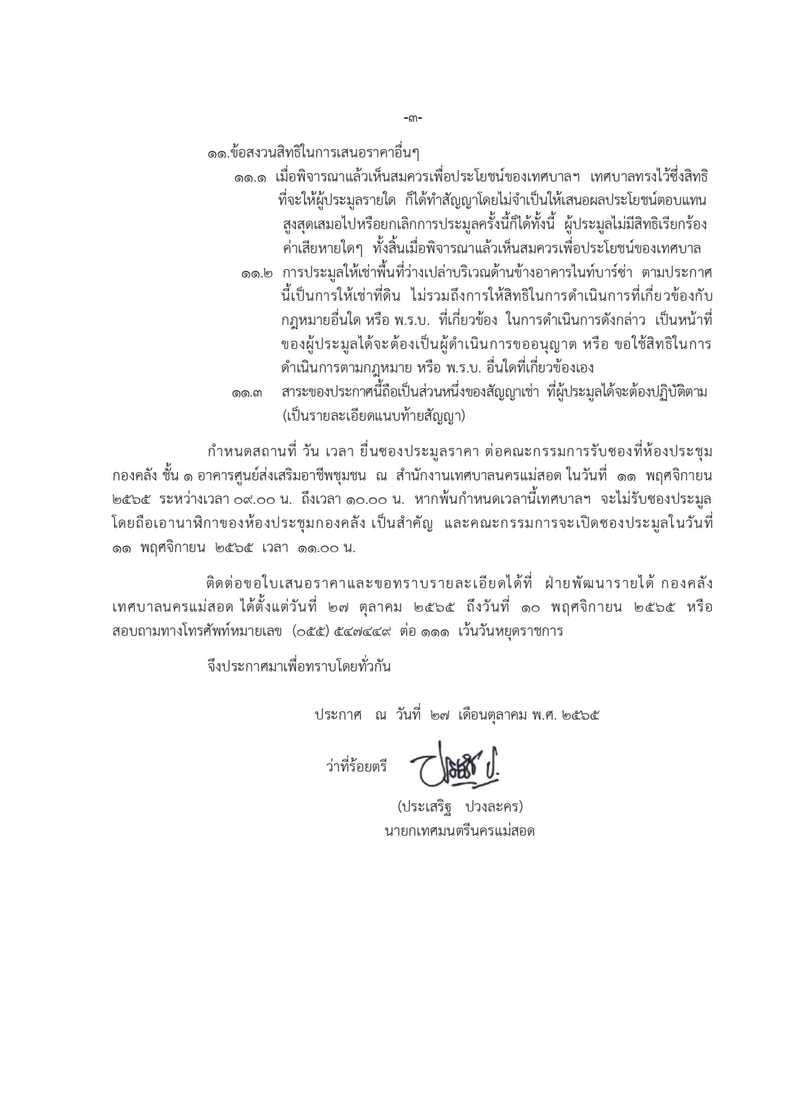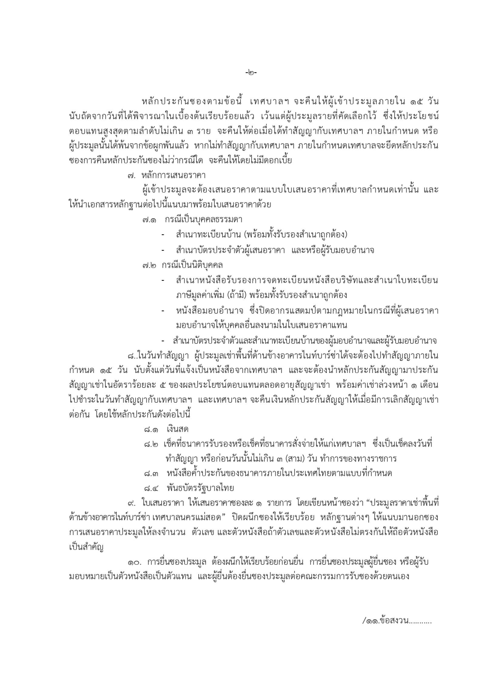ประกาศเทศบาลนครแม่สอด เรื่อง เปิดประมูลให้เช่าพื้นที่ว่างเปล่าบริเวณด้านข้างอาคารไนท์บาร์ซ่า