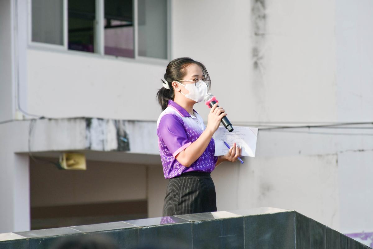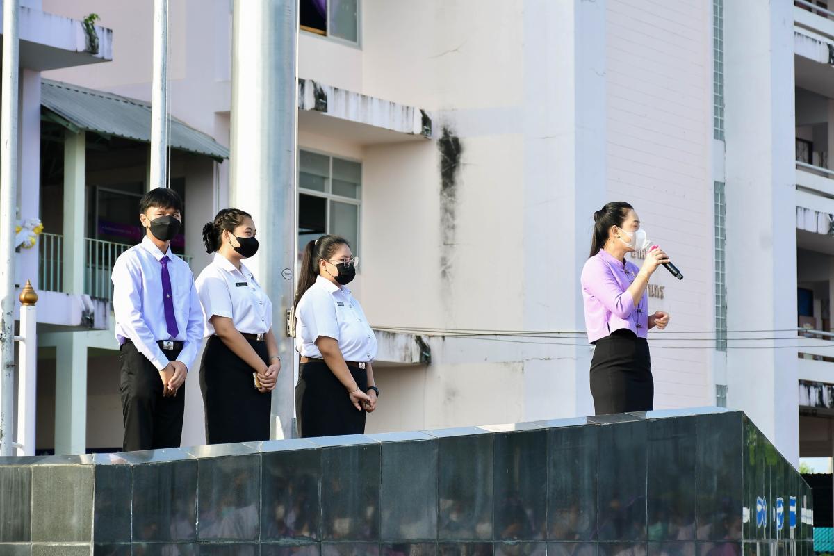ผู้อำนวยการสถานศึกษาโรงเรียนเทศบาลเฉลิมพระเกียรติฯ กล่าวให้โอวาทนักเรียนภาคเรียนที่ 2 ประจำปีการศึกษา 2565