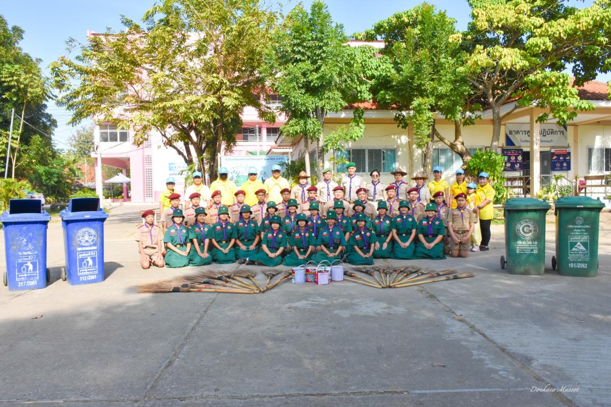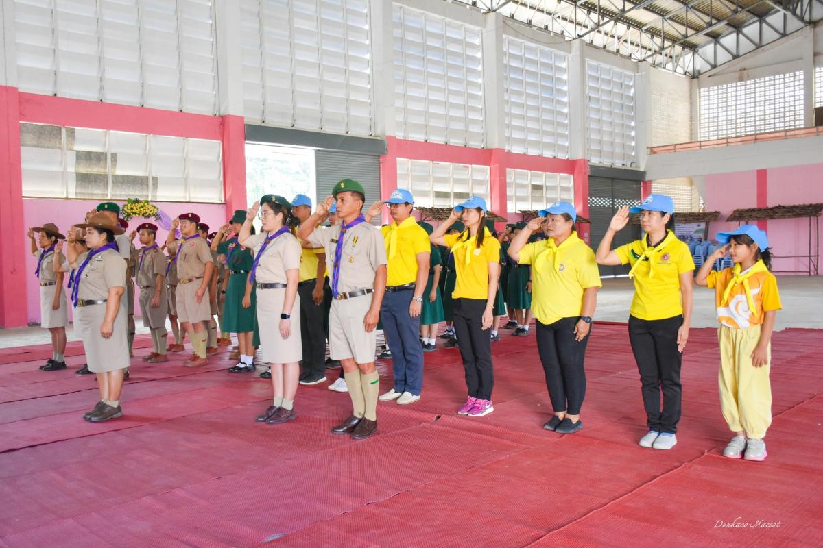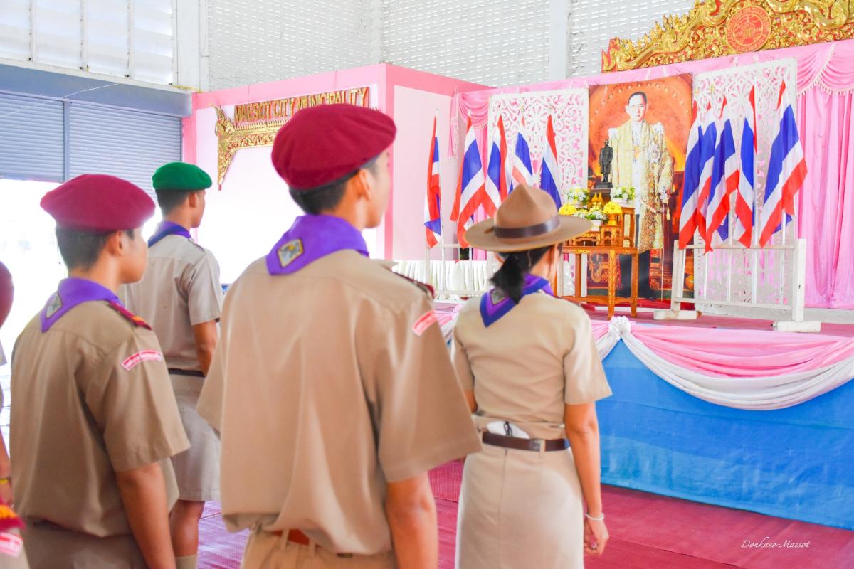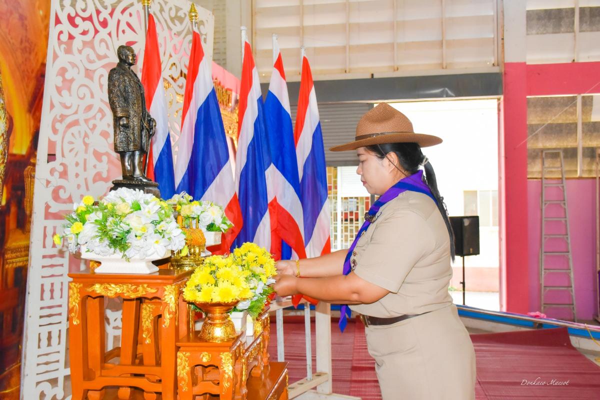 โรงเรียนเทศบาลวัดดอนแก้ว อำเภอแม่สอด จังหวัดตาก นำโดยนางวาสนา เบ้านี รองผู้อำนวยการสถานศึกษา รักษาการในตำแหน่งผู้อำนวยการสถานศึกษา เตรียมงานน้อมรำลึกในพระมหากรุณาธิคุณ เนื่องในวันคล้ายวันพระบรมราชสมภพ พระบาทสมเด็จพระบรมชนกาธิเบศร มหาภูมิพลอดุลยเดชมหาราช บรมนาถบพิตร วันชาติ และวันพ่อแห่งชาติ วันดินโลก 5 ธ.ค.65 08.30 น. คณะลูกเสือจิตอาสาพระราขทาน คณะครูจิตอาสาที่เข้าร่วมพิธีพร้อมกัน ณ อาคารอเนก 3 เวลา 09.00 น. วางพานพุ่มดอกไม้ นำถวายบังคม อ่านคำน้อมรำลึกฯ เสร็จพิธีถ่ายรูปที่ะลึกจิตอาสาบำเพ็ญประโยชน์พัฒนาในพื้นที่สถานศึกษา