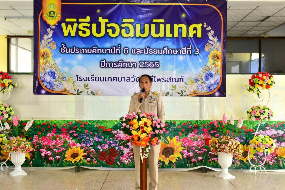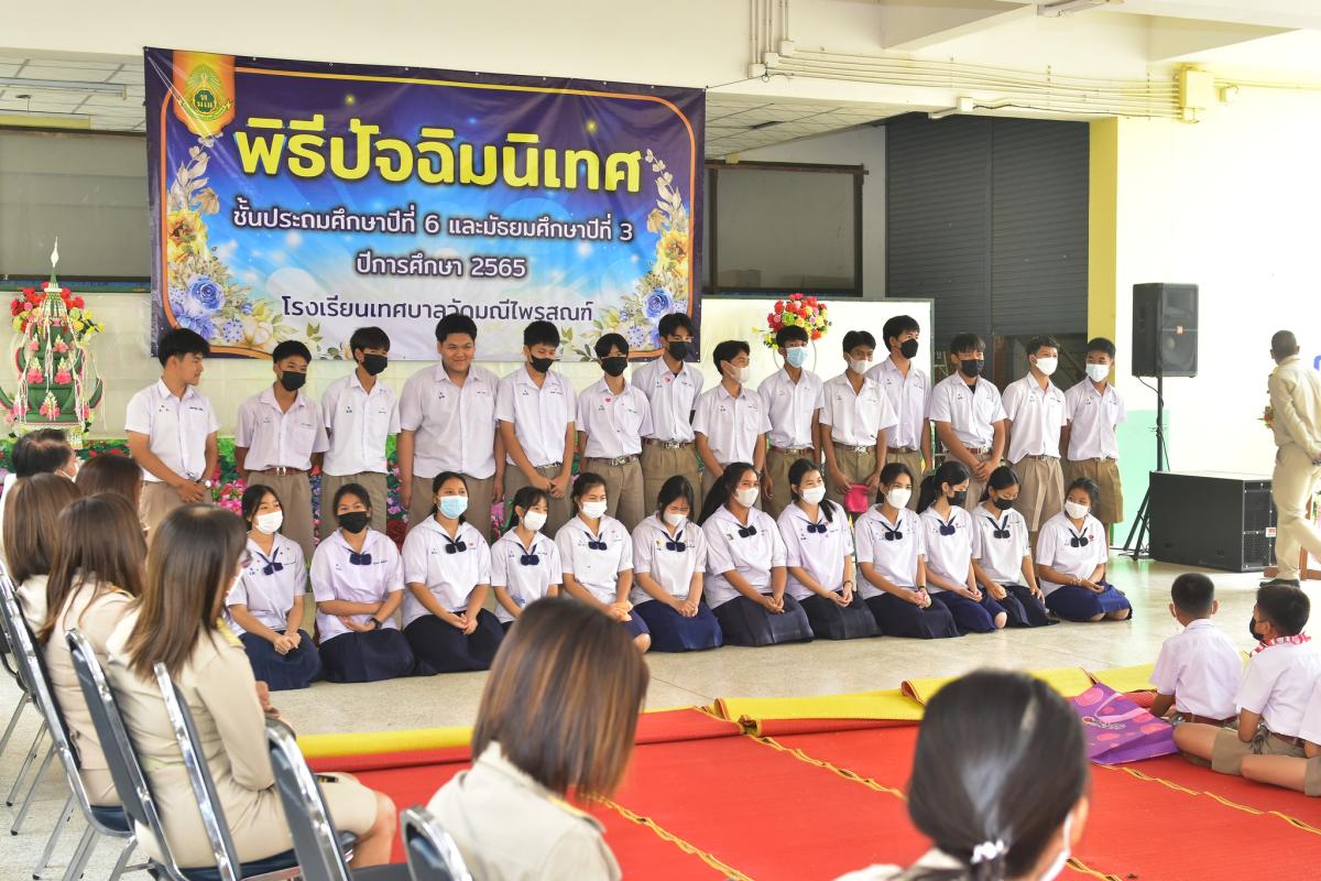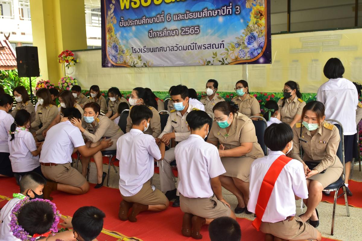 นายสุเทพ วันฟั่น ผู้อำนวยการสถานศึกษาโรงเรียนเทศบาลวัดมณีไพรสณฑ์ จัดพิธีปัจฉิมนิเทศนักเรียนชั้นประถมศึกษาปีที่ 6 และชั้นมัธยมศึกษาปีที่ 3 โดยมีคณะครูและนักเรียนเข้าร่วม เพื่อให้นักเรียนตระหนักเห็นคุณค่าของตนเองและสถาบัน เป็นการเปิดโอกาสให้นักเรียนได้แสดงความกตัญญูรู้คุณแก่สถาบัน ผู้บริหารและคณะครู อีกทั้งยังให้นักเรียนได้มีแนวทางปฏิบัติตนและเตรียมตัวนักเรียนให้มีความพร้อมในการออกไปสู่สังคมภายนอก