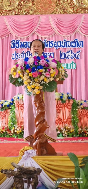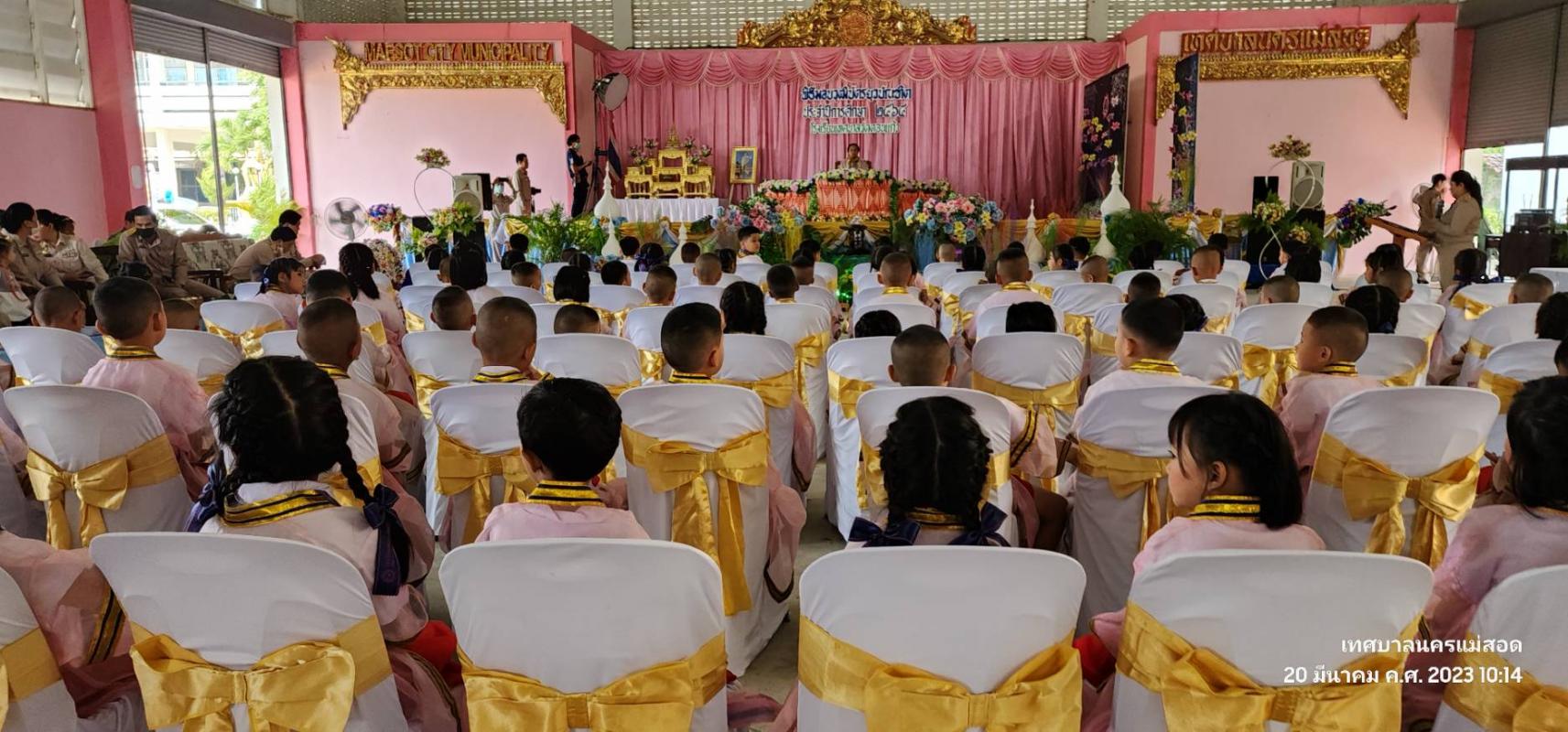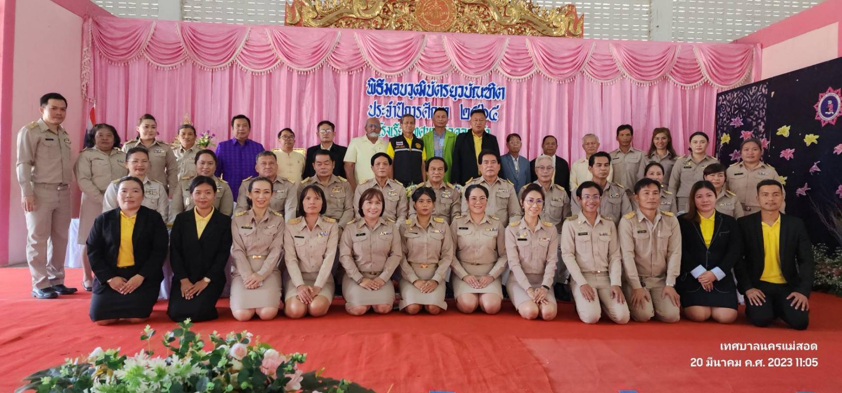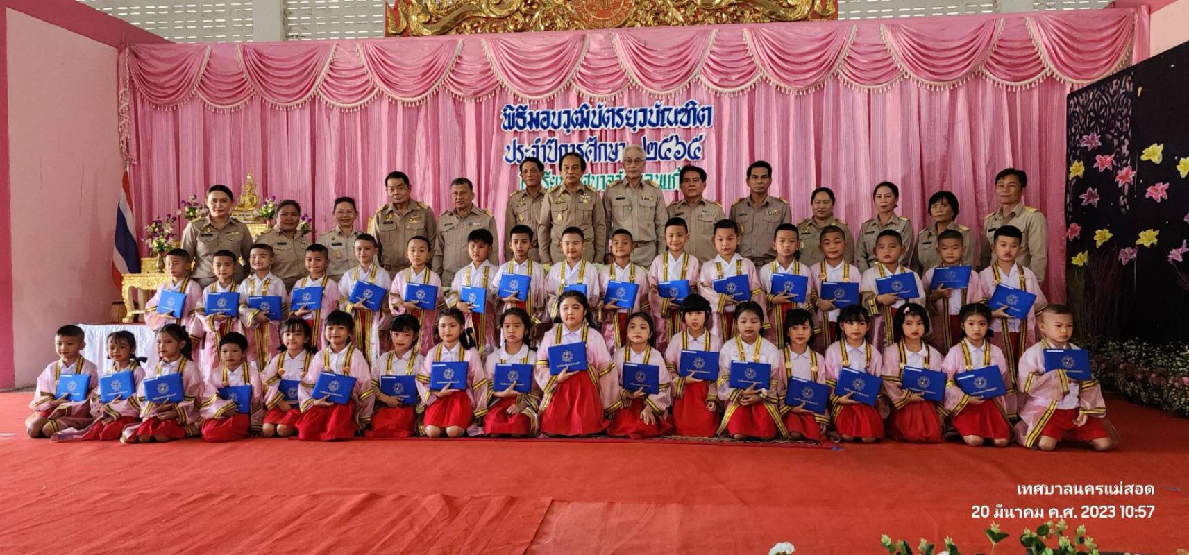 วันจันทร์ที่ 20 มีนาคม 2566 เวลา 09.00 น. ณ อาคารอเนกประสงค์ โรงเรียนเทศบาลวัดดอนแก้ว อำเภอแม่สอด จังหวัดตาก ว่าที่ร้อยตรีประเสริฐ ปวงละคร นายกเทศมนตรีนครแม่สอด เป็นประธานกล่าวเปิดพิธีการมอบวุฒิบัตรฯ พร้อมด้วยคณะผู้บริหาร สมาชิกสภาเทศบาล ผู้อำนวยการกองและเจ้าหน้าที่ที่เกี่ยวข้องเทศบาลนครแม่สอด เข้าร่วมพิธีการมอบวุฒิบัตรยุวบัณฑิต ประจำปีการศึกษา 2565 โรงเรียนเทศบาลวัดดอนแก้ว สังกัดเทศบาลนครแม่สอด โดยมีนางวาสนา เบ้านี รองผู้อำนวยการรักษาการสถานศึกษาโรงเรียนเทศบาลวัดดอนแก้ว กล่าวรายงานและวัตถุประสงค์ เพื่อเป็นกำลังใจให้เกียรติแก่นักเรียนที่เรียนจบชั้นอนุบาล 3 ที่จะก้าวต่อไปในวันข้างหน้าในระดับชั้นประถมศึกษา ปีที่ 1 และเพื่อสร้างแรงบัลดาลใจในการศึกษาต่อ ประสานความรักความผูกพันความรู้สึกประทับใจในสถาบัน ระหว่างครู นักเรียน ผู้ปกครอง ชุมชน และโรงเรียน โดยมีนักเรียนที่จบระดับอนุบาล 3 ประจำปีการศึกษา 2565 จำนวน 102 คน