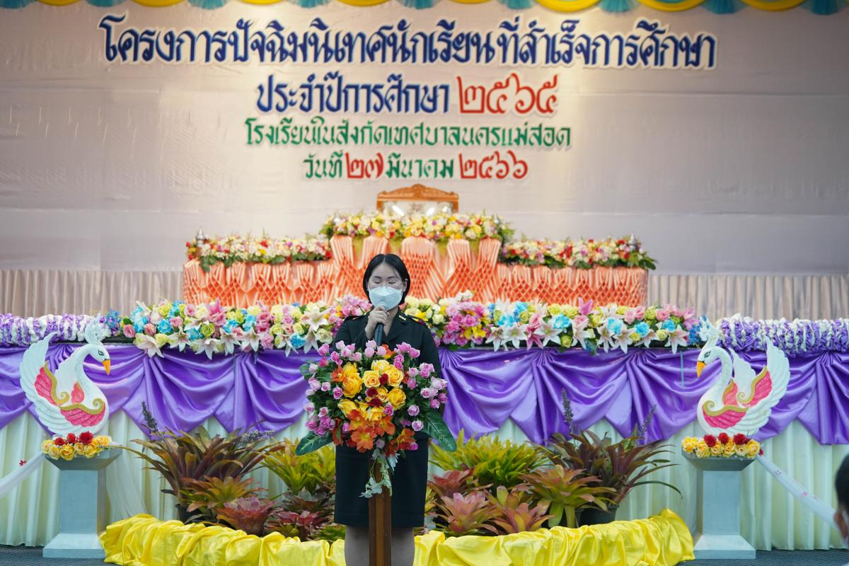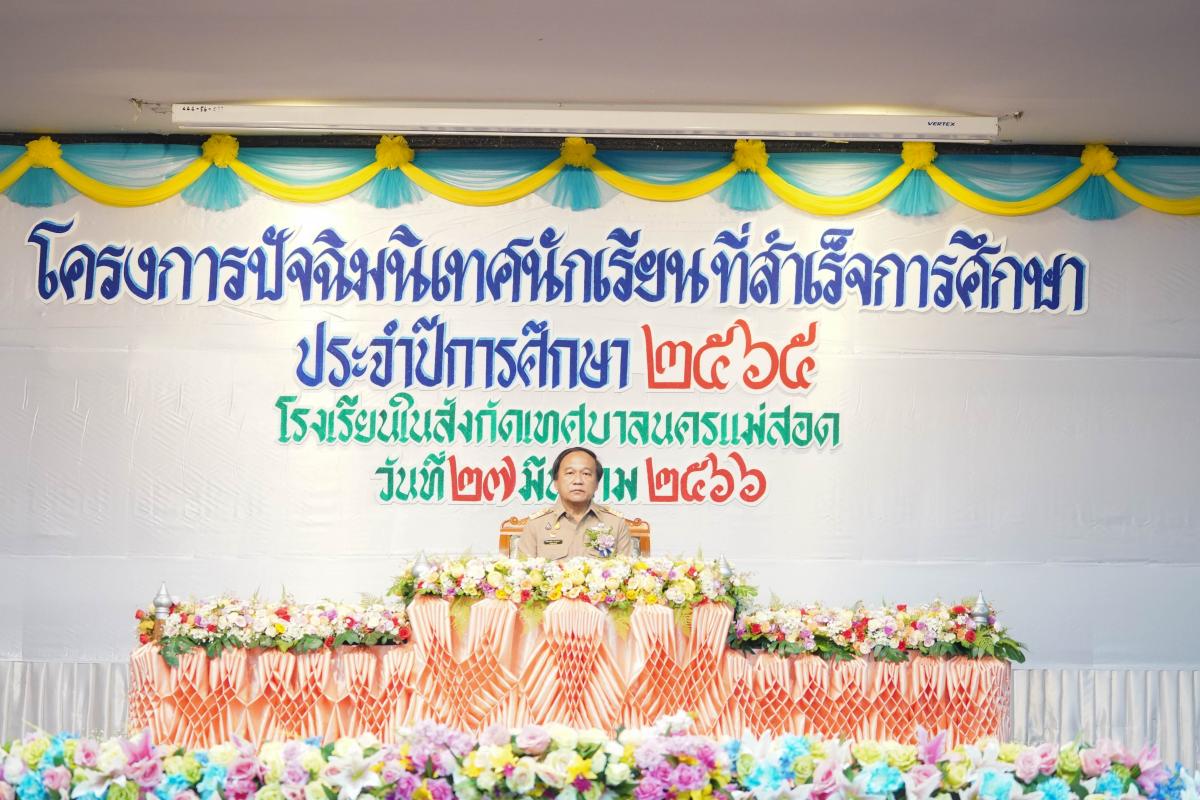 วันจันทร์ ที่ 27 มีนาคม 2566 ณ ศูนย์กลางแสดงสินค้าและศูนย์ประชุมเพื่อส่งเสริมการท่องเที่ยว (OTOP) เทศบาลนครแม่สอด อำเภอแม่สอด จังหวัดตาก เทศบาลนครแม่สอดร่วมกับโรงเรียนในสังกัดเทศบาลนครแม่สอด ประกอบด้วยโรงเรียนเทศบาลวัดชุมพลคีรี โรงเรียนเทศบาลวัดมณีไพรสณฑ์ โรงเรียนเทศบาลวัดบุญญาวาส โรงเรียนเทศบาลวัดดอนแก้ว โรงเรียนเทศบาลเฉลิมพระเกียรติสมเด็จพระเทพรัตนราชสุดา ฯ สยามบรมราชกุมารี และโรงเรียนกีฬาเทศบาลนครแม่สอด จัดกิจกรรมปัจฉิมนิเทศนักเรียนที่สำเร็จการศึกษา ประจำปีการศึกษา 2565 โดยได้รับเกียรติจากว่าที่ร้อยตรี ประเสริฐ ปวงละคร นายกเทศมนตรีนครแม่สอด เป็นประธานในพิธีเปิด พร้อมด้วยคณะผู้บริหาร สมาชิกสภาเทศบาล หัวหน้าส่วนราชการเทศบาลนครแม่สอด ผู้อำนวยการโรงเรียน คณะครูสถานศึกษาในสังกัดเทศบาลนครแม่สอด และผู้ปกครองนักเรียน เข้าร่วมกิจกรรมในครั้งนี้