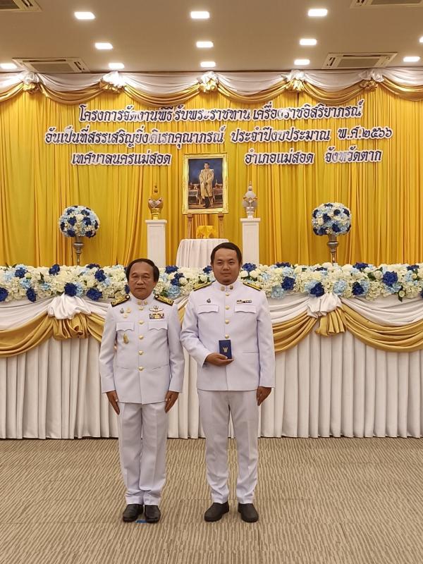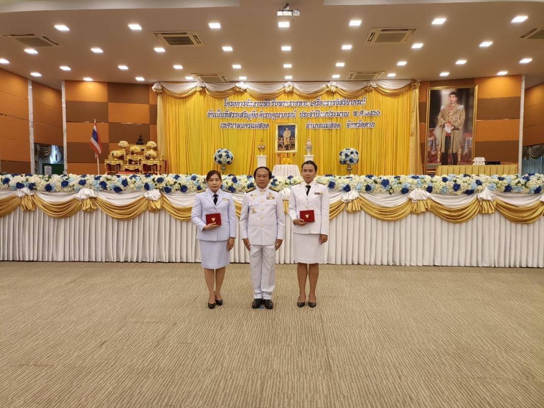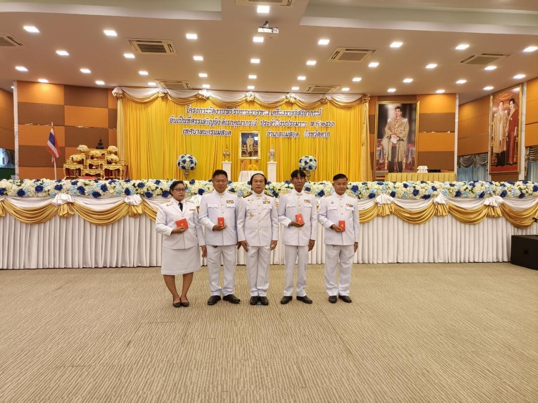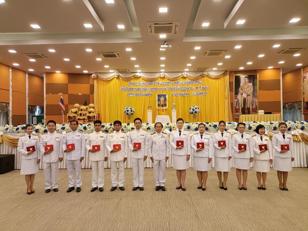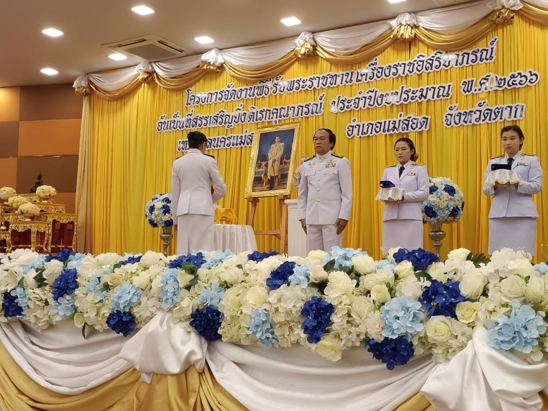 ว่าที่ร้อยตรีประเสริฐ ปวงละคร นายกเทศมนตรีนครแม่สอด ประธานในพิธี นายชาตรี สุขารมย์ ปลัดเทศบาลนครแม่สอด เป็นผู้กล่าวรายงาน โดยมี คณะผู้บริหาร สมาชิกสภาเทศบาล ผู้อำนวยการกอง พนักงานเทศบาล และเจ้าหน้าที่ที่เกี่ยวข้อง เข้าร่วมพิธีรับพระราชทานเครื่องราชอิสริยาภรณ์อันเป็นที่สรรเสริญยิ่งดิเรกคุณาภรณ์ ประจำปีงบประมาณ พ.ศ.2566 เนื่องในโอกาสพระราชทานพิธีเฉลิมพระชนมพรรษาฯ ต่อหน้าพระบรมฉายาลักษณ์พระบาทสมเด็จพระเจ้าอยู่หัว โดยไม่ต้องเข้าเฝ้าทูลละอองธุลีพระบาทรับพระราชทาน เพื่อเป็นการถวายเกียรติ