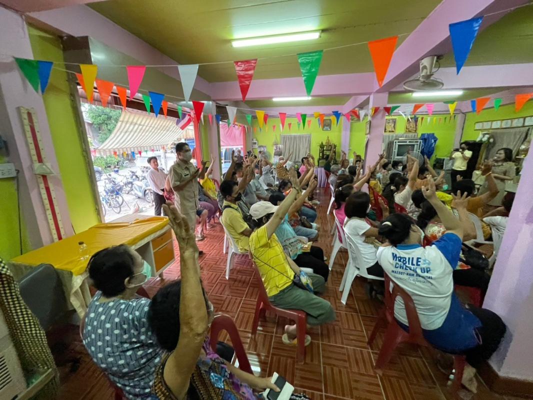 จัดกิจกรรมรวมกลุ่มผู้สูงอายุจากวิทยาลัยสูงวัยนครแม่สอด เพื่อทำกิจกรรมแลกเปลี่ยนความรู้ร่วมกัน