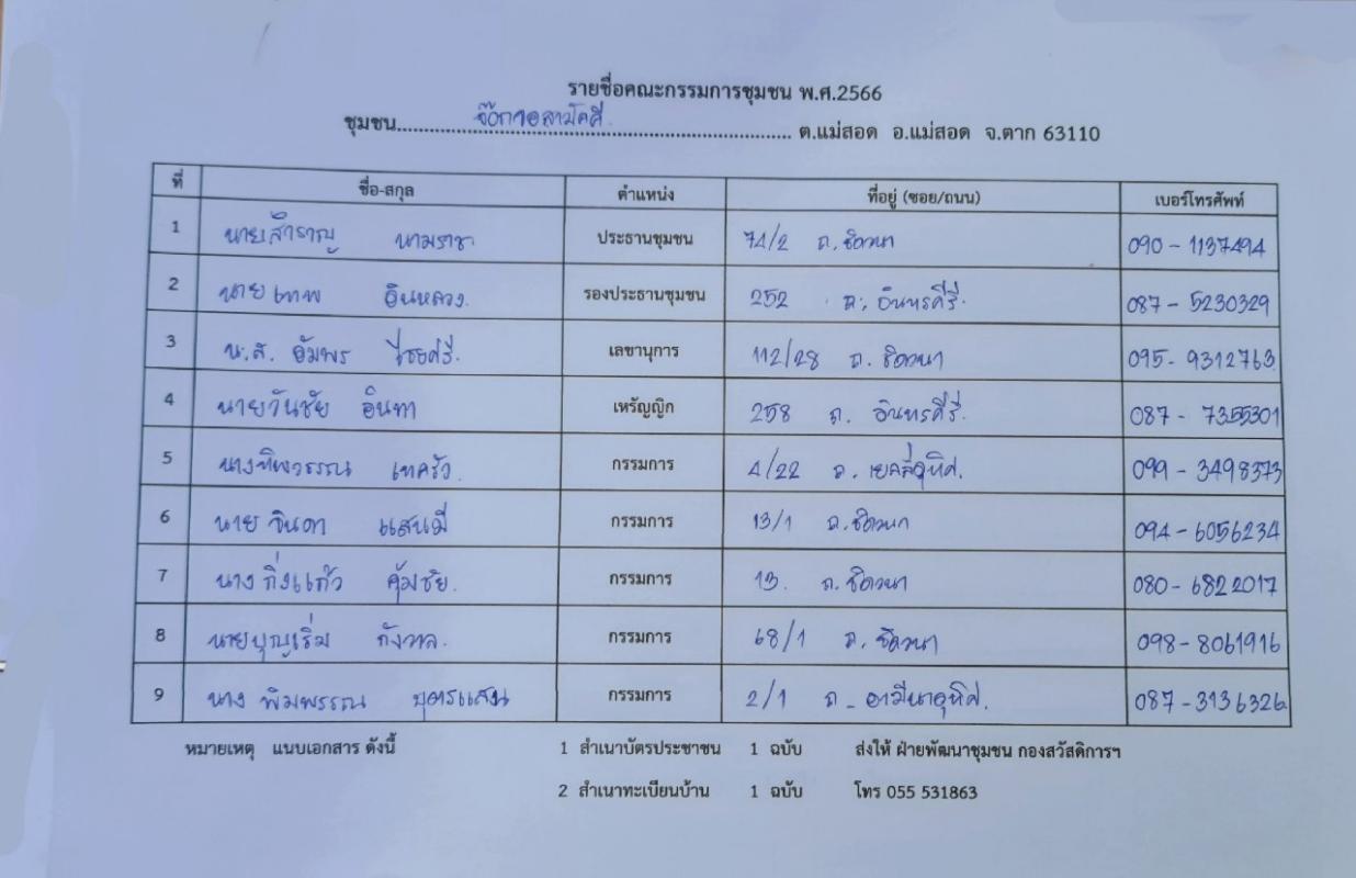 เลือกคณะกรรมการชุมชน ชุมชนจ๊อกจอสามัคคี