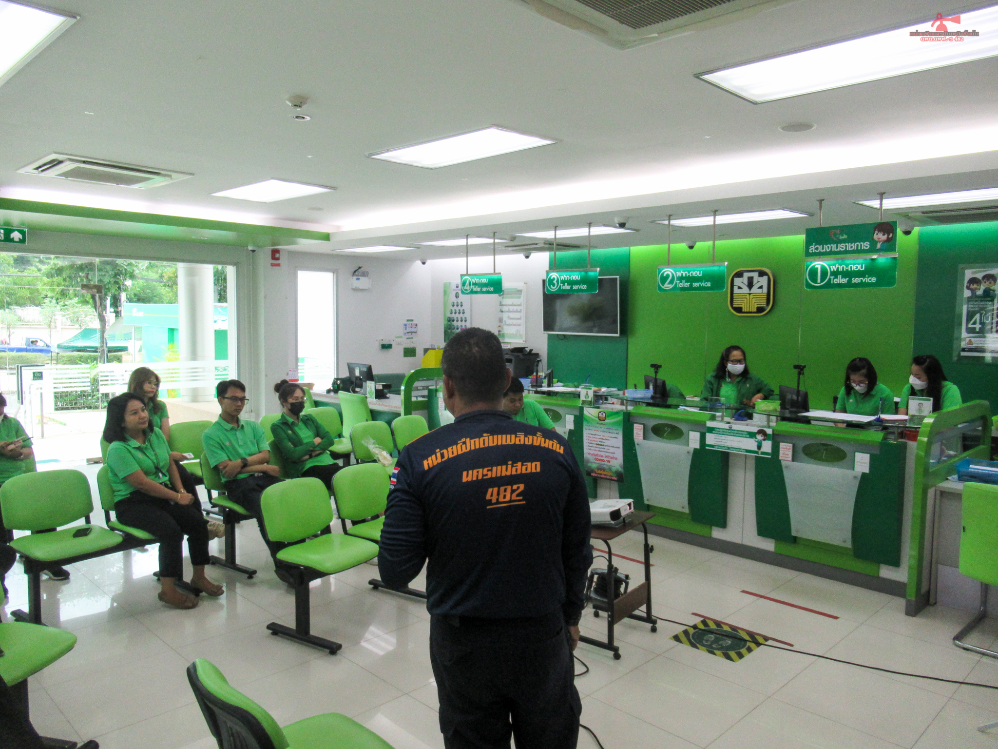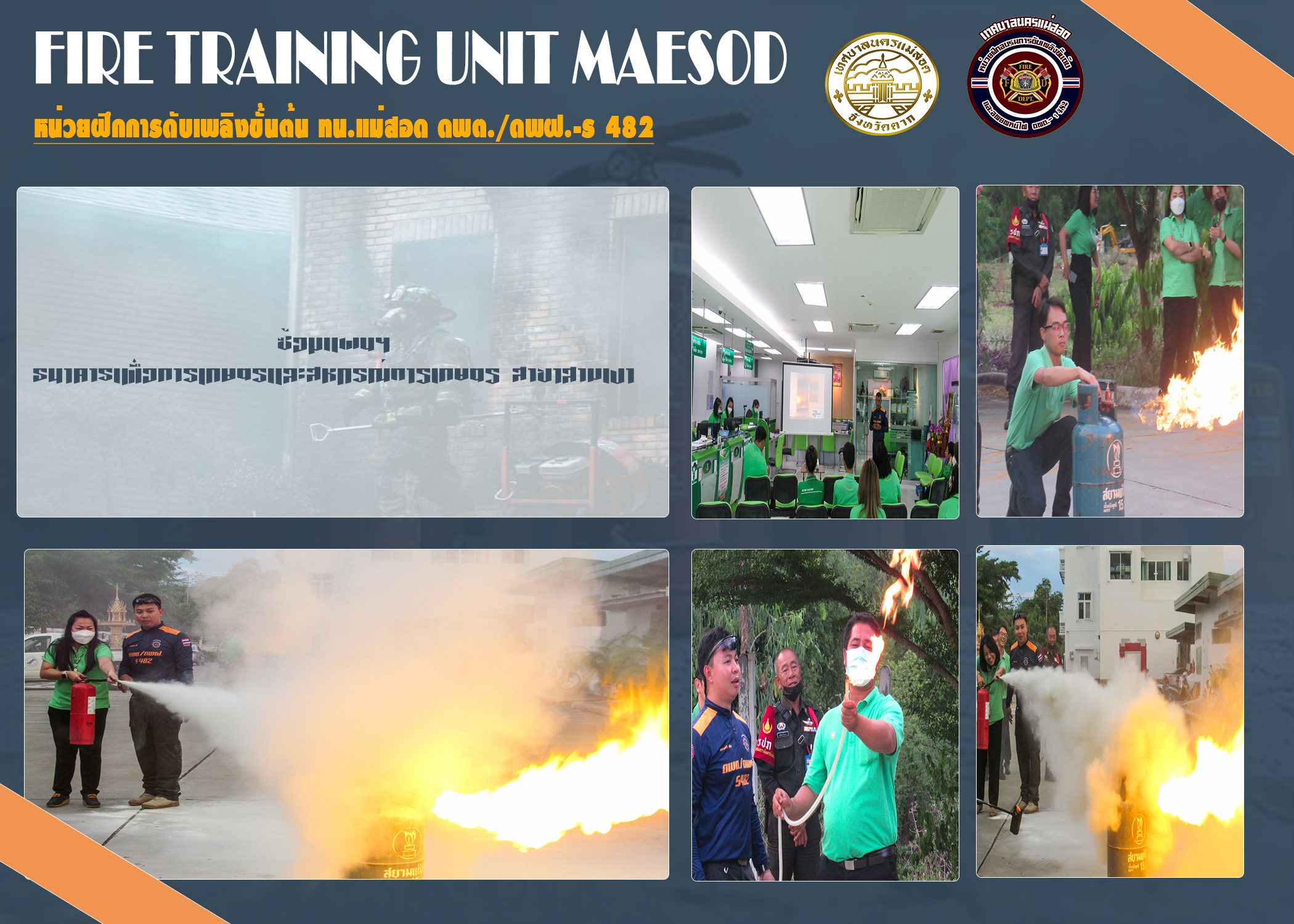 วันที่ 4 กรกฎาคม 2566 เวลา 08.30 - 17.00 น. เจ้าหน้าที่หน่วยฝึก ดพต./ดพฝ.-ร482 ออกฝึกอบรม เรื่อง การดับเพลิงขั้นต้น การฝึกซ้อมดับเพลิง และฝึกซ้อมอพยพหนีไฟ ให้กับ ธนาคารเพื่อการเกษตรและสหกรณ์การเกษตร สาขาสามเงา ตามโครงการอบรมเชิงปฏิบัติการเรื่องการอบรมดับเพลิงเบื้องต้น ประจำปี 2566 โดยการจัดให้มีการฝึกอบรมการป้องกันและระงับอัคคีภัย การดับเพลิงเบื้องต้นและการใช้ถังเคมีดับเพลิง โดยมีการให้ความรู้เกี่ยวกับ เรื่อง แผนการดับเพลิงและวิธีการดับเพลิงของ สถานประกอบการ ฝึกซ้อมดับเพลิง และได้ให้ความรู้เกี่ยวกับการป้องกันระงับอัคคีภัย องค์ประกอบของการเกิดไฟ ประเภทของไฟ ความรู้เกี่ยวกับสารเคมี การใช้ถังดับเพลิงเคมี พร้อมสาธิตการฝึกปฏิบัติ การใช้อุปกรณ์เครื่องมือการดับเพลิงและบรรเทาสาธารณภัย การใช้อุปกรณ์ดับเพลิงอย่างถูกวิธี เลือกใช้ ความปลอดภัย การแนะนำอุปกรณ์ชุดผจญเพลิง เป็นต้น