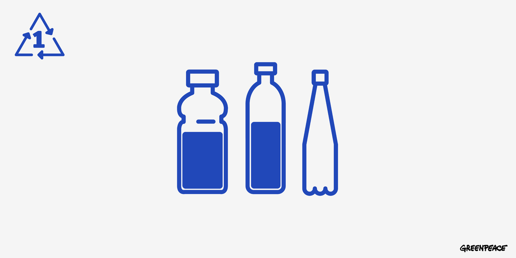 สัญลักษณ์ เบอร์ 1: โพลีเอทิลีน เทเรฟทาเลต (PET) พลาสติกประเภทนี้คือขวดพลาสติกใสๆ มองทะลุได้ เช่น ขวดน้ำเปล่า ขวดน้ำอัดลม ขวดน้ำมันพืช และขวดเครื่องปรุงอาหาร ให้เราจำสัญลักษณ์ เบอร์ 1 และ PET