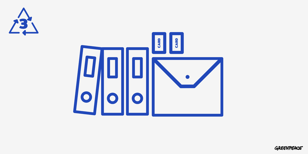 สัญลักษณ์ เบอร์ 3: โพลีไวนิล คลอไรด์ (PVC) หรือที่เราเรียกกันติดปากว่า พีวีซี เป็นวัสดุที่เป็นแบบแข็งหรือเป็นยาง นอกจากท่อพีวีซีที่ใช้เป็นอุปกรณ์ก่อสร้างแล้ว พวกของเล่นเด็ก ผ้าม่านห้องน้ำ แฟ้มใส่เอกสาร บัตร หลอดพลาสติกแบบแข็ง ก็ผลิตจากพีวีซีทั้งสิ้น ทั้งนี้ทั้งนั้น พลาสติกชนิดนี้สารประกอบคลอรีนเป็นองค์ประกอบสามารถตกค้างเป็นมลพิษต่อสุขภาพเราและสิ่งแวดล้อมได้ และเป็นพลาสติกที่เป็นมิตรต่อสิ่งแวดล้อมน้อยที่สุดอีกด้วย ส่วนสัญลักษณ์ของ พีวีซี คือเบอร์ 3 หรือ PVC/V