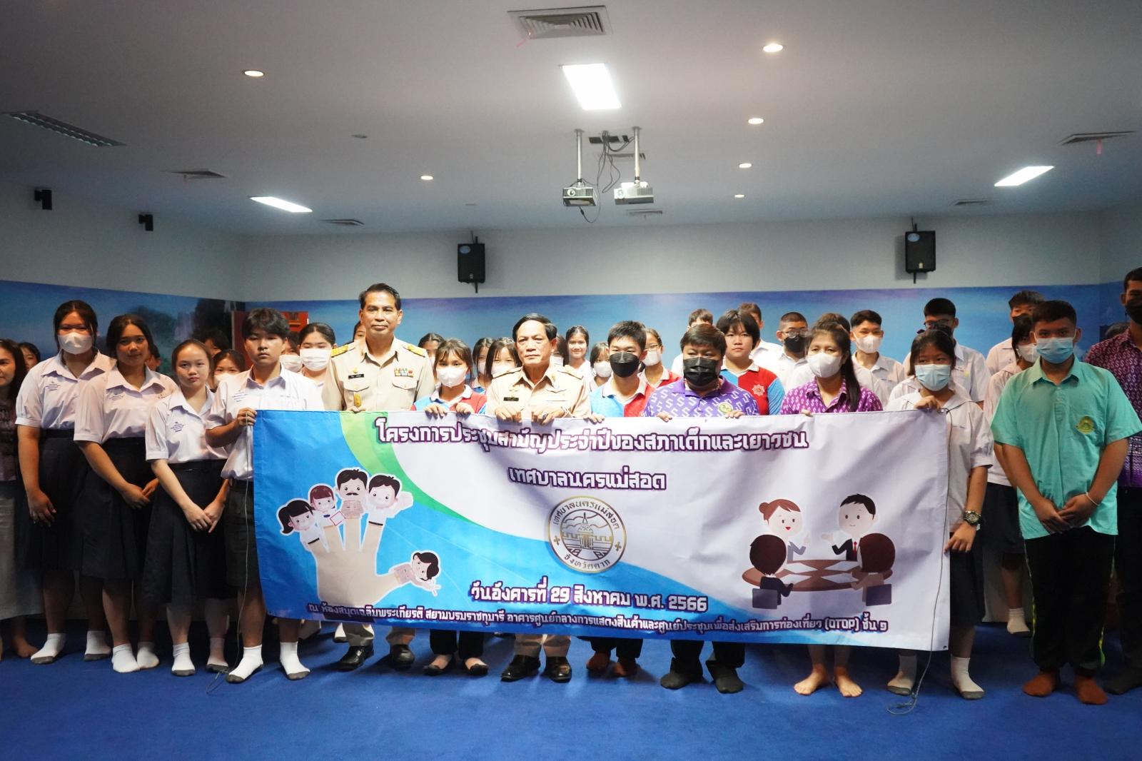 วันอังคารที่ 29 พฤษภาคม 2566 เวลา 09.00 น. ณ พิพิธภัณฑ์นครแม่สอด เทศบาลนครแม่สอดจัดกิจกรรมโครงการประชุมสามัญประจำปีของสภาเด็กและเยาวชนเทศบาลนครแม่สอด โดยว่าที่ร้อยตรีประเสริฐ ปวงละคร นายกเทศมนตรีนครแม่สอด มอบหมายให้นายกรณพงศ์ คงปาน รองนายกเทศเทศมนตรีนครแม่สอดให้เกียรติเป็นประธานในพิธีเปิดกิจกรรมโครงการ และได้รับเกียรติจากนายพีระ วงค์หมอ ผู้อำนวยการกองการศึกษา พร้อมด้วยพนักงานเจ้าหน้าที่กองการศึกษา คณะครูร่วมกล่าวรายงานวัตถุประสงค์ของการจัดโครงการครั้งนี้