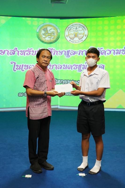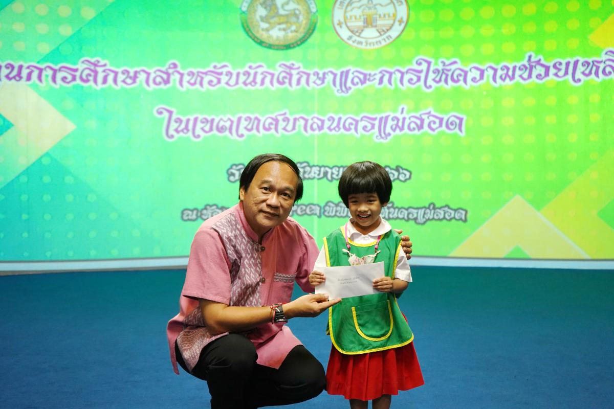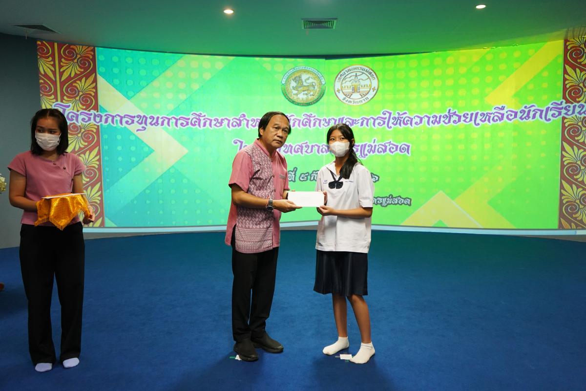 โครงการทุนการศึกษาสำหรับนักศึกษาและการให้ความช่วยเหลือนักเรียนในเขตเทศบาลนครแม่สอด จัดขึ้นเพื่อให้ความช่วย แบ่งเบาภาระของผู้ปกครอง ส่งเสริมสนับสนุนการศึกษาให้แก่นักเรียน นักศึกษา ที่ผ่านเกณฑ์คัดเลือก จำนวนทั้งสิ้น 27 ราย
