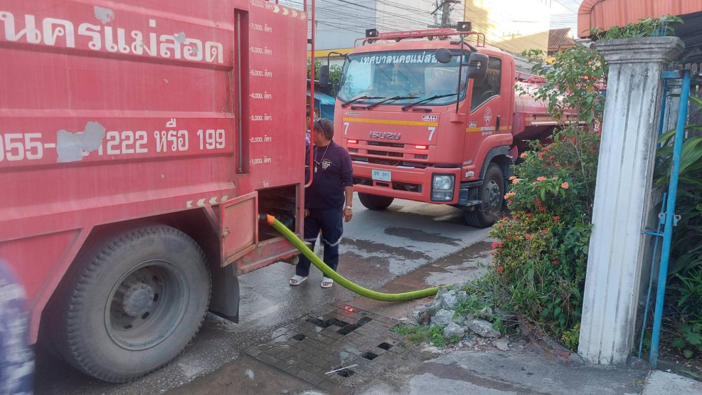 วันที่ 9 กันยายน 2566 เวลา 17.30 น. ฝ่ายป้องกันฯ นครแม่สอด ได้รับแจ้งมีเหตุเพลิงไหม้บ้านประชาชน 26/2 ถนนราษฎร์อุทิศ บริเวณหน้าปั๊มน้ำมันนอร์ท อ.แม่สอด จ.ตาก จึงนำรถยนต์บรรทุกน้ำดับเพลิงจำนวน 3 คัน รถกู้ภัยเคลื่อนที่เร็ว จำนวน 1 คัน ออกทำการระงับเหตุเพลิงไหม้ เมื่อถึงสถานที่เกิดเหตุพบเป็นบ้านกึ่งปูนไม้ 2 ชั้น เพลิงกำลังลุกไหม้ จึงทำการฉีดระงับเหตุเพลิงไหม้ และขจัดเชื้อเพลิง ร่วม ดับเพลิง ทต.ท่าสายลวด จนสามารถควบคุมเพลิงไหม้ไว้ได้เวลา 18.10 น. และทำการเฝ้าระวังที่เกิดเหตุเพราะอาจจะเกิดเพลิงไหม้ซ้ำซ้อนได้