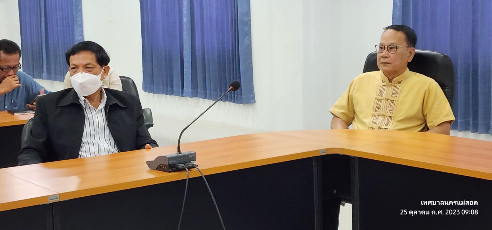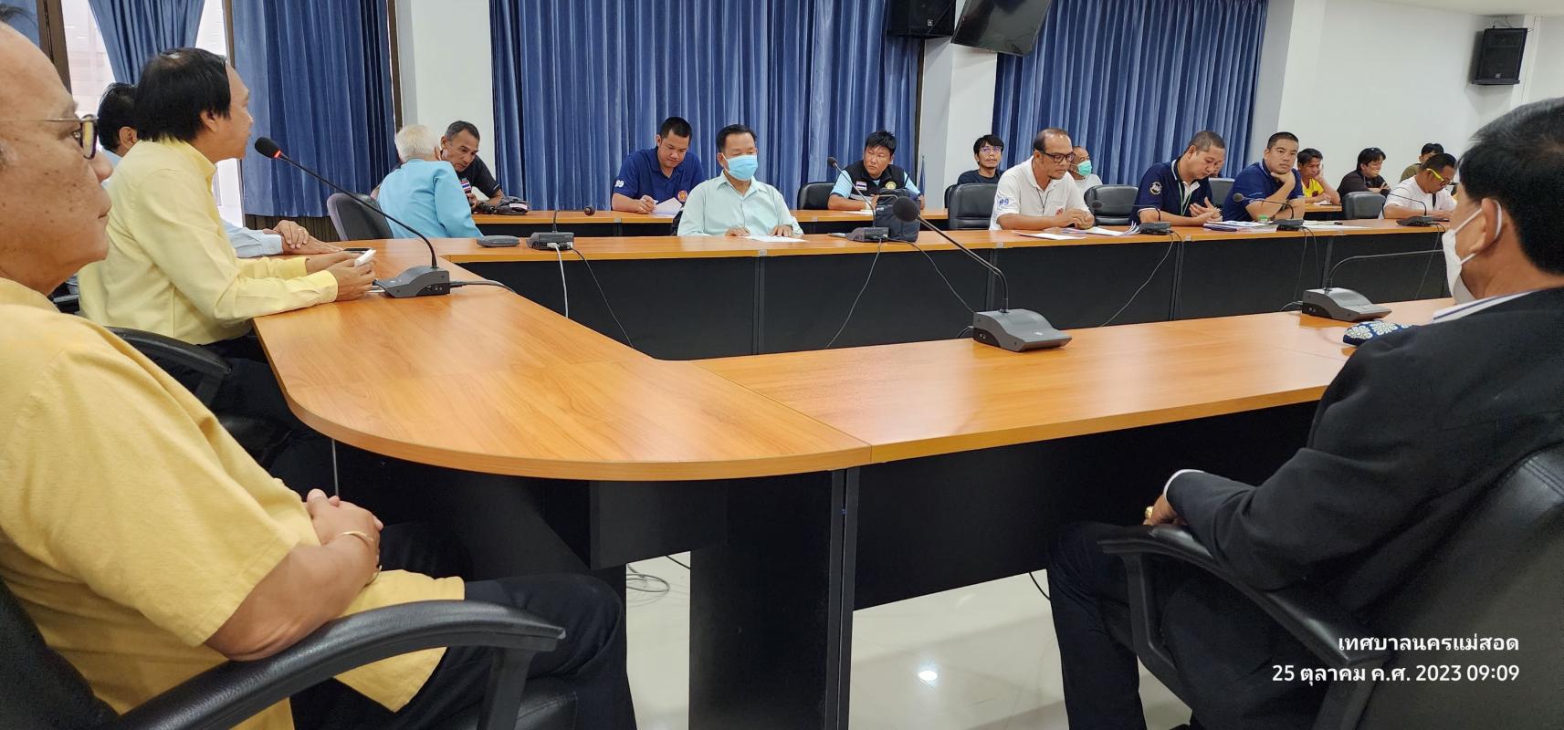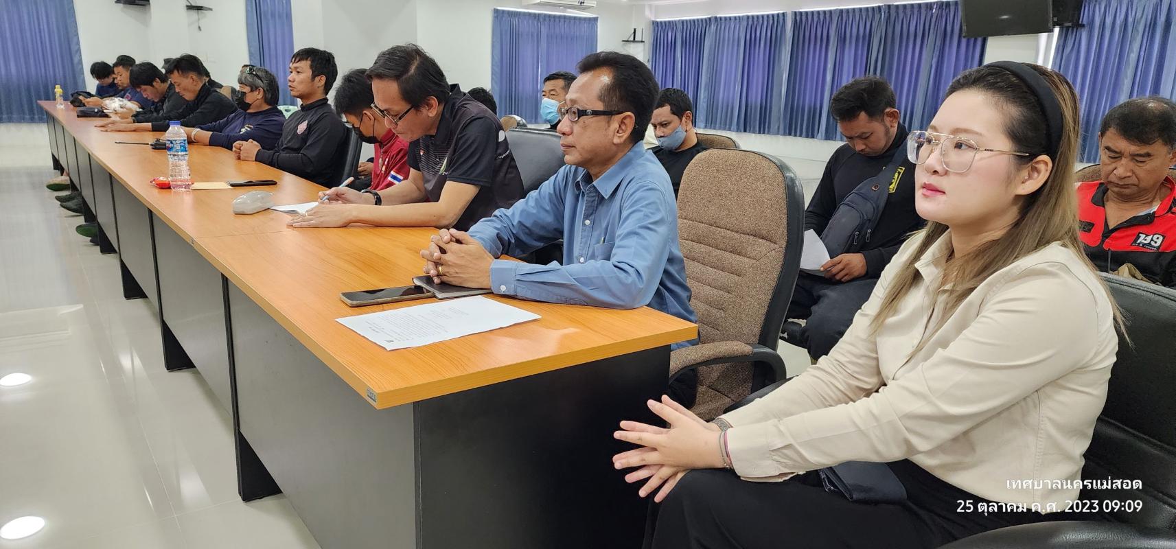 วันที่ 25 ตุลาคม 2566 เวลา 09.00 น. ว่าที่ร้อยตรี ประเสริฐ ปวงละคร นายกเทศมนตรีนครแม่สอด เป็นประธานการประชุมประจำเดือนตุลาคม 2566 ฝ่ายป้องกันและบรรเทาสาธารณภัย ทน.แม่สอด พร้อมคณะผู้บริหารเทศบาลฯ ณ ห้องประชุมเพชรเมืองฉอด ชั้น 3 อาคารศูนย์ป้องกันฯ เขตเศรษฐกิจพิเศษตาก